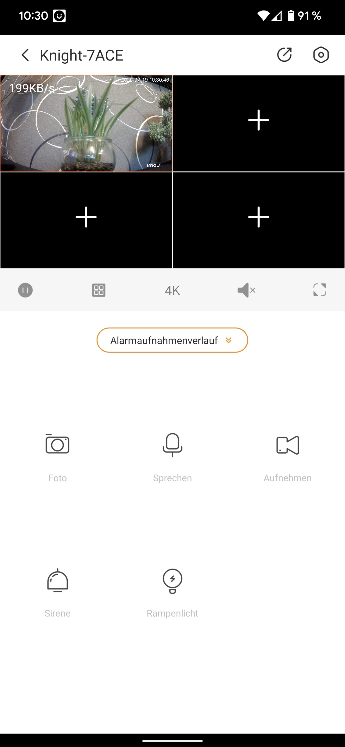 Bedient wird die Imou Knight 4K Überwachungskamera über die bereits angesprochene Imou Life-App des Herstellers. Diese ist schön übersichtlich gestaltet und wartet zudem mit einer sauberen Übersetzung ins Deutsche auf, bei der alles klar verständlich ist.