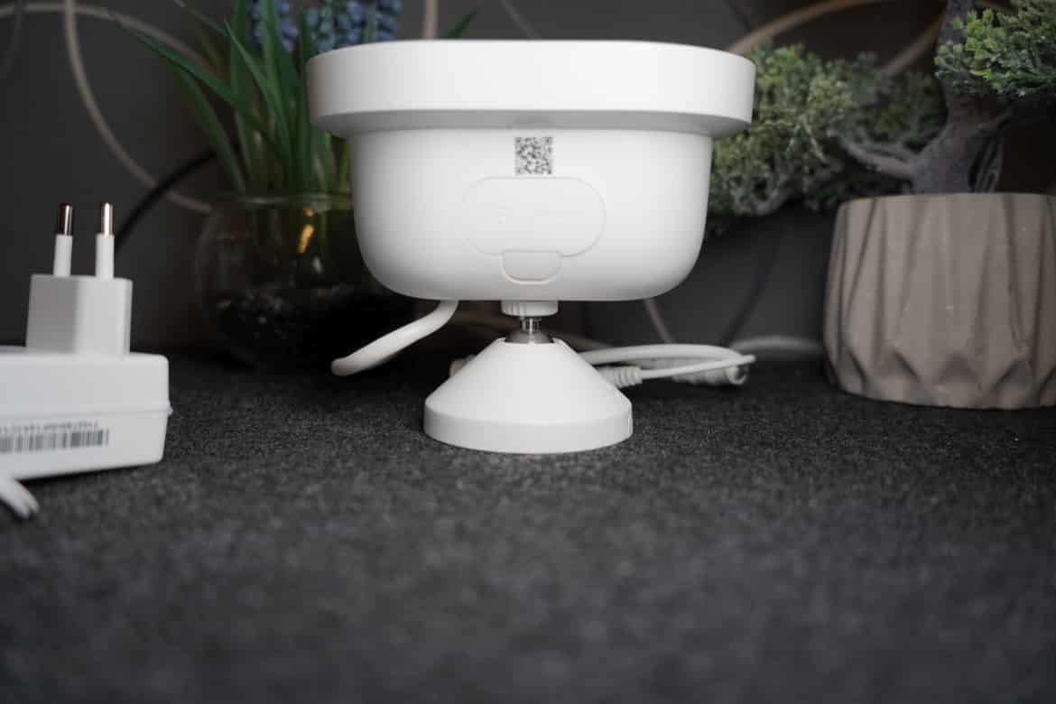 Darunter platziert der Hersteller den Lautsprecher, während das Mikrofon für die Nutzung als Gegensprechanlage an der Oberseite zu finden ist. Mithilfe des Schraubgewindes an der Rückseite wird die Cam zudem mit der Halterung verbunden.