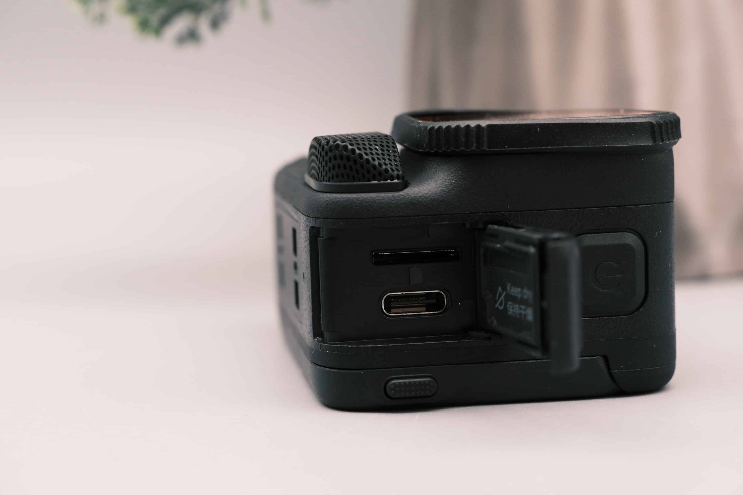 Weiterer Vorteil: Der rückseitige 2,5-Zoll-Touchscreen lässt sich um bis zu 180° nach vorne klappen und liefert so bei Selfieaufnahmen einen echten Mehrwert. An den Seiten der Ace Pro 2 befinden sich zwei Klappen. Auf der einen Seite findet der 1.800-mAh-Akku Platz, auf der anderen Seite findet sich der USB-C-Port zum Aufladen der Kamera. Ein zweiter Akku befindet sich zudem im Lieferumfang. Sehr praktisch.