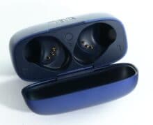 In unserem Test sind die Kopfhörer in Blau zu sehen, sie werden von JBL zum selben Preis aber auch in Schwarz und Weiß angeboten. Die Farbgebung betrifft dabei sowohl die Kopfhörer selbst als auch das Ladeetui.