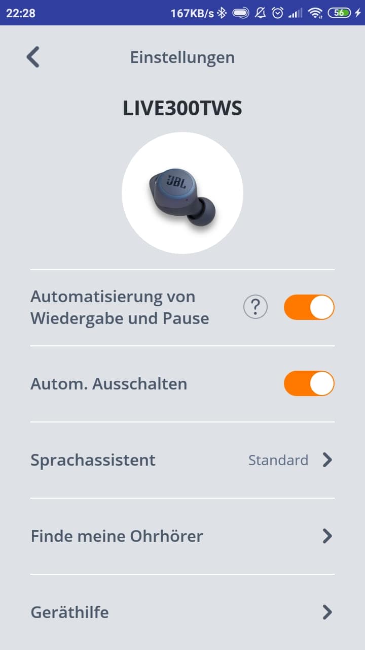 Ein ähnlich positives Bild liefern die JBL Live 300 TWS auch bei der Usability ab. Die Kopfhörer sind uns nach längerem Tragen noch angenehm und sie sitzen für den Sport fest genug. Auch die Bedienung funktioniert gut: Sie erfolgt über die Touch-Flächen auf der Außenseite der Kopfhörer, die die Tipp- und Wischbewegungen sehr zuverlässig umsetzen.