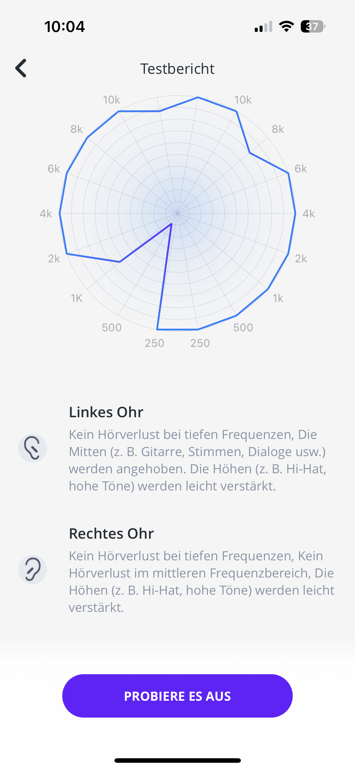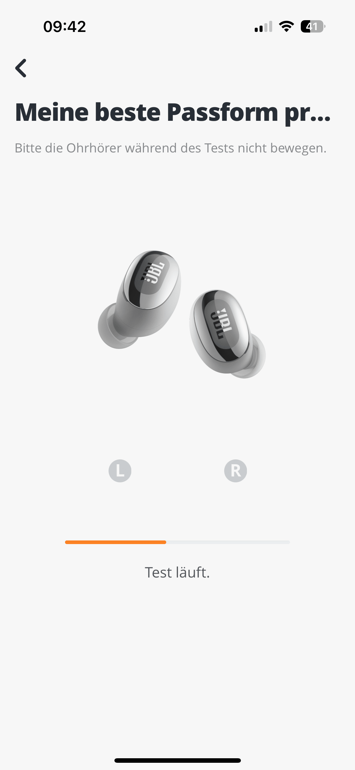 Für die weitere Bedienung kommt, wie erwähnt die JBL Headphones-App zum Einsatz. Und die lässt ebenfalls keine Einstellungen vermissen. Hier gibt es sogar eine Test für die ideale Passform, sowie eigene Equalizer und einen Klangtest für den personalisierten Sound.