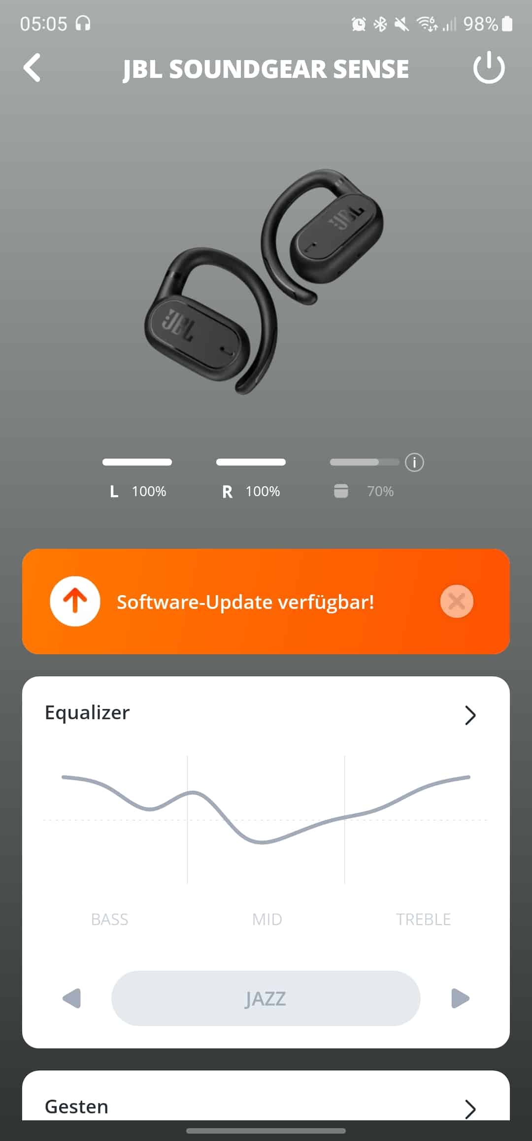 Ich würde zwar immer noch In-Ear-Kopfhörer vorziehen, da ich vor allem klanglich das bestmögliche Ergebnis wünsche und eine aktive Geräuschunterdrückung für mich sehr wichtig ist. Wer darauf allerdings verzichten kann, erhält mit den JBL Soundgear Sense eine sehr gute Alternative, die durchaus einen Blick wert ist.