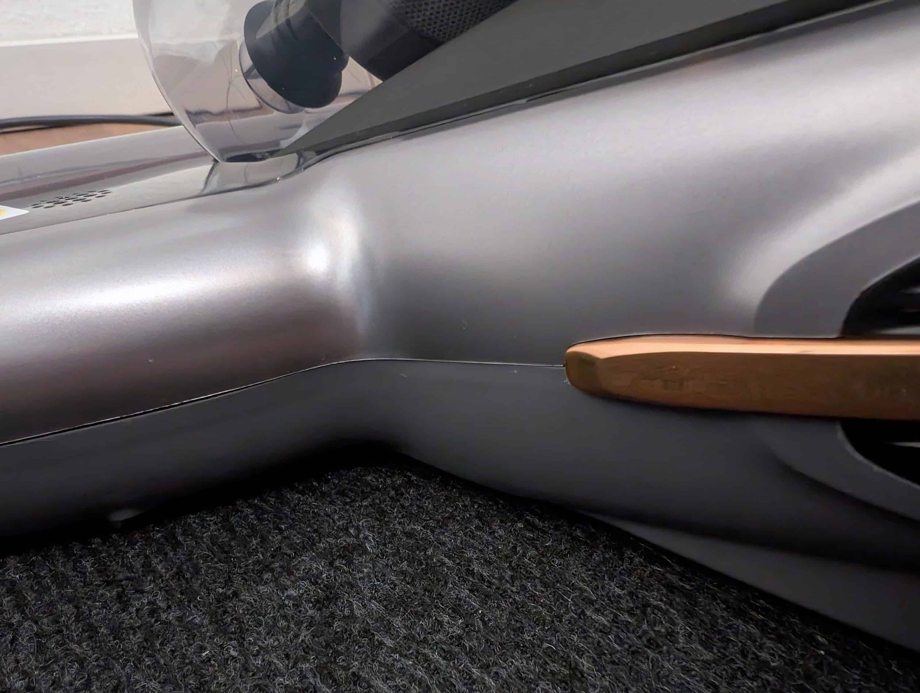 Die flachen Heizplatten auf der Düsen-Unterseite verteilen die Wärme spürbar gleichmäßig über die komplette Saugbreite. Während Standard-Modelle oft nur punktuell heiß werden, arbeitet die Graphen-Heizung flächendeckend. Man fühlt eine konstante, intensive Wärme über die gesamte Düsenbreite – nicht nur einzelne heiße Stellen.