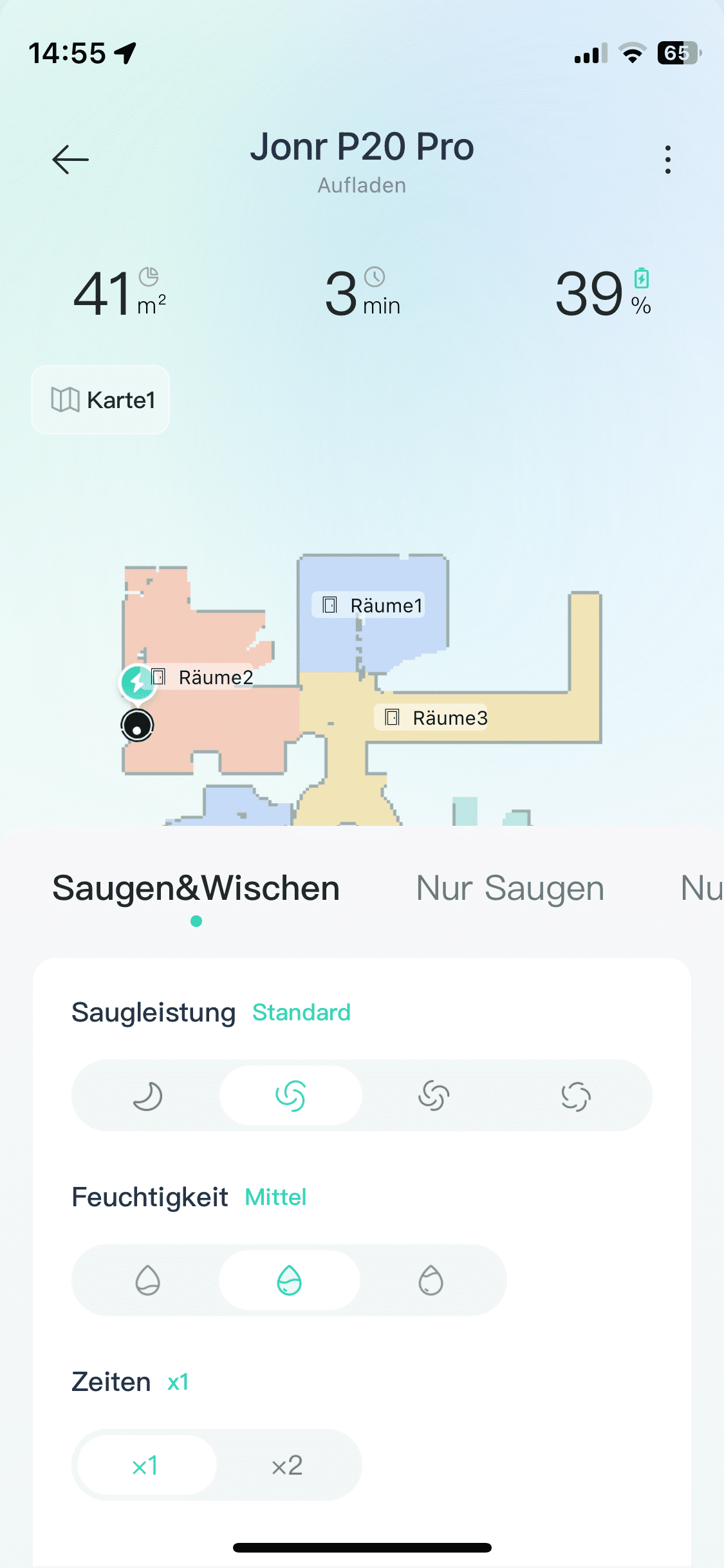 Hersteller JONR hat noch keine eigene App im Angebot. Stattdessen lässt sich der P20 Pro über die Xiaomi-App einrichten und steuern. Und das funktioniert in der Praxis hervorragend. So lassen sich in der App viele verschiedene Einstellungen zum smarten Haushaltshelfer vornehmen.