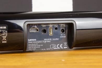 Schließen wir die Lenco SBW-801BK das erste Mal an, heißt es: Kabel rein und fertig. Mehr als ein Stromkabel für Soundbar und den Subwoofer sowie ein Verbindungskabel zum Fernseher brauchen wir nicht anschließen. Die Verbindung zwischen den beiden Bestandteilen des Audiosystems funktioniert komplett kabellos. Die Verbindung ist nach dem Einschalten auf Anhieb hergestellt.