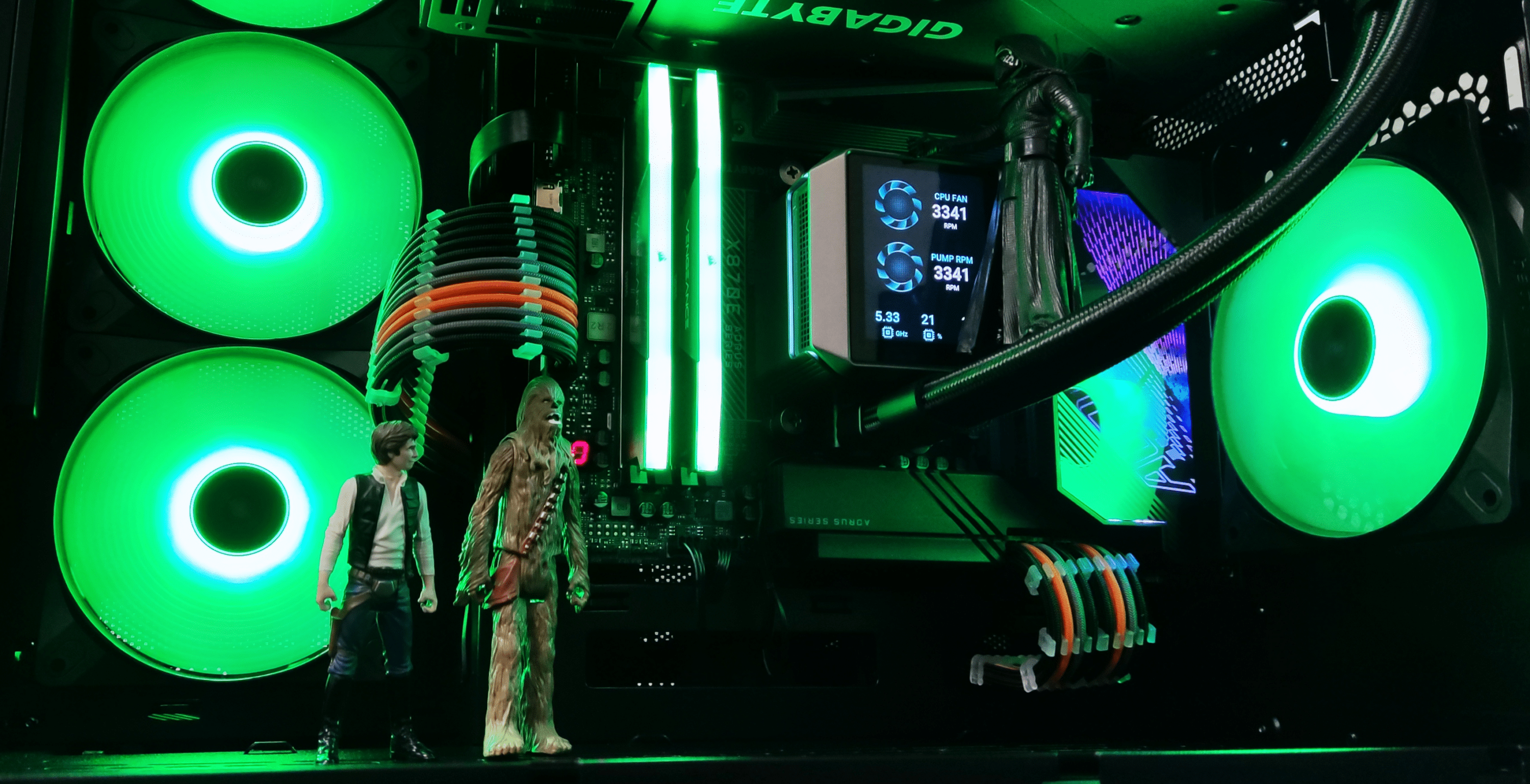 - Was fehlt, ist eine Lüftersteuerung in der Software. Lüfterkurven oder Anpassungen für die Pumpe lassen sich nur über das Mainboard regeln.