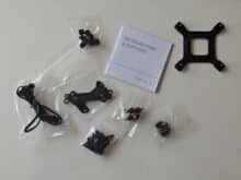 Immerhin: eine große farbige Abbildung und auf der Rückseite die technischen Details zu dem Produkt. Das Paket enthält neben der AiO- Einheit selbst, natürlich noch die Montage-Kits für AMD und Intel CPU`s, eine kleine Informations-Broschüre, ein Kabel um die RGB-Beleuchtung anzusteuern, ein Satz Abstandhalter und sämtliche Schrauben, die für die Montage der Pumpeneinheit oder der Lüfter zuständig sind.
