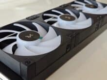 Bei der Mystique bleibt der Lautstärkepegel quasi immer gleich. Die Lüfter sind auf etwa 1000U/Min. eingestellt. Das reicht auch für den Gaming-Mode. Die Lüfter somit im Prinzip nie zu hören. Wenn sich etwas wahrnehmbare Geräusche entwickeln, dann die Wasserpumpe oder die Lüfter der GPU. Die gibt es ja auch noch.