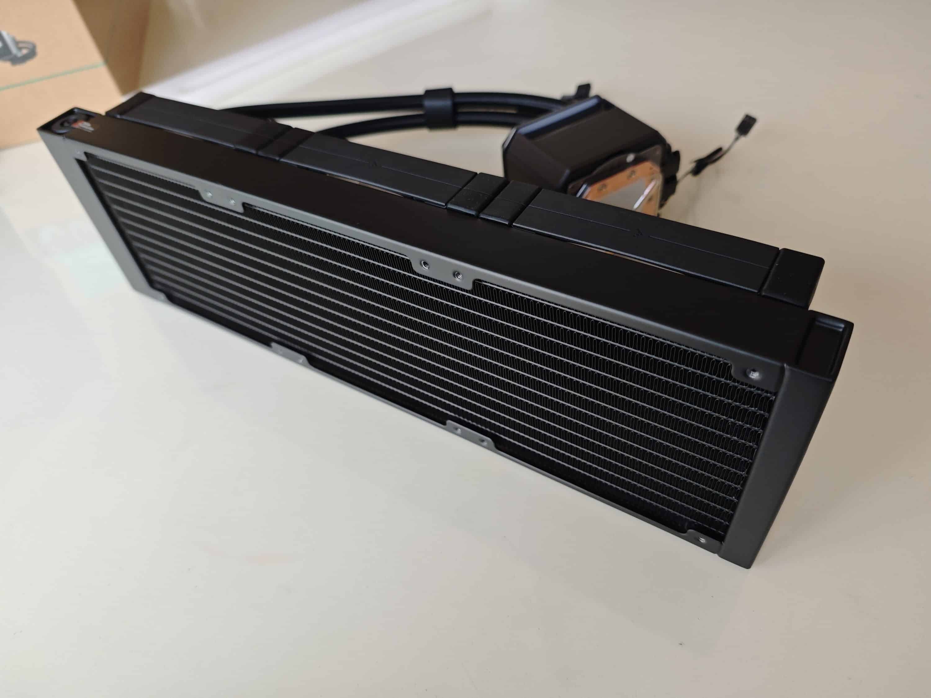 Insgesamt sieht die Einheit sehr gut und massiv aus. Vom Gefühl her hat man gleich schon den Eindruck, dass Qualität verbaut worden ist. Die Finnen des Radiators sind alle 100%ig und sauber ausgeformt. Die Schläuche sind ummantelt und auch das Display ist absolut frei von Kratzern und sieht sehr cool aus. Die Verarbeitung ist sehr sauber ausgeführt worden.