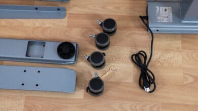Außerdem verpackte Liftor die doch teils empfindliche Technik so gut, dass Transportschäden wohl äußerst selten vorkommen dürften. Wie umfangreich das Paket gefüllt ist, hängt in aller erster Linie davon ab, welche zusätzlichen Gadgets du im Konfigurator wählst. Hier gibt es neben Gestell und Tischplatte nämlich auch passende Sitzmöbel, Tischrollen und sogar ein Fahrrad, das Sport während der Arbeit ermöglichen soll.