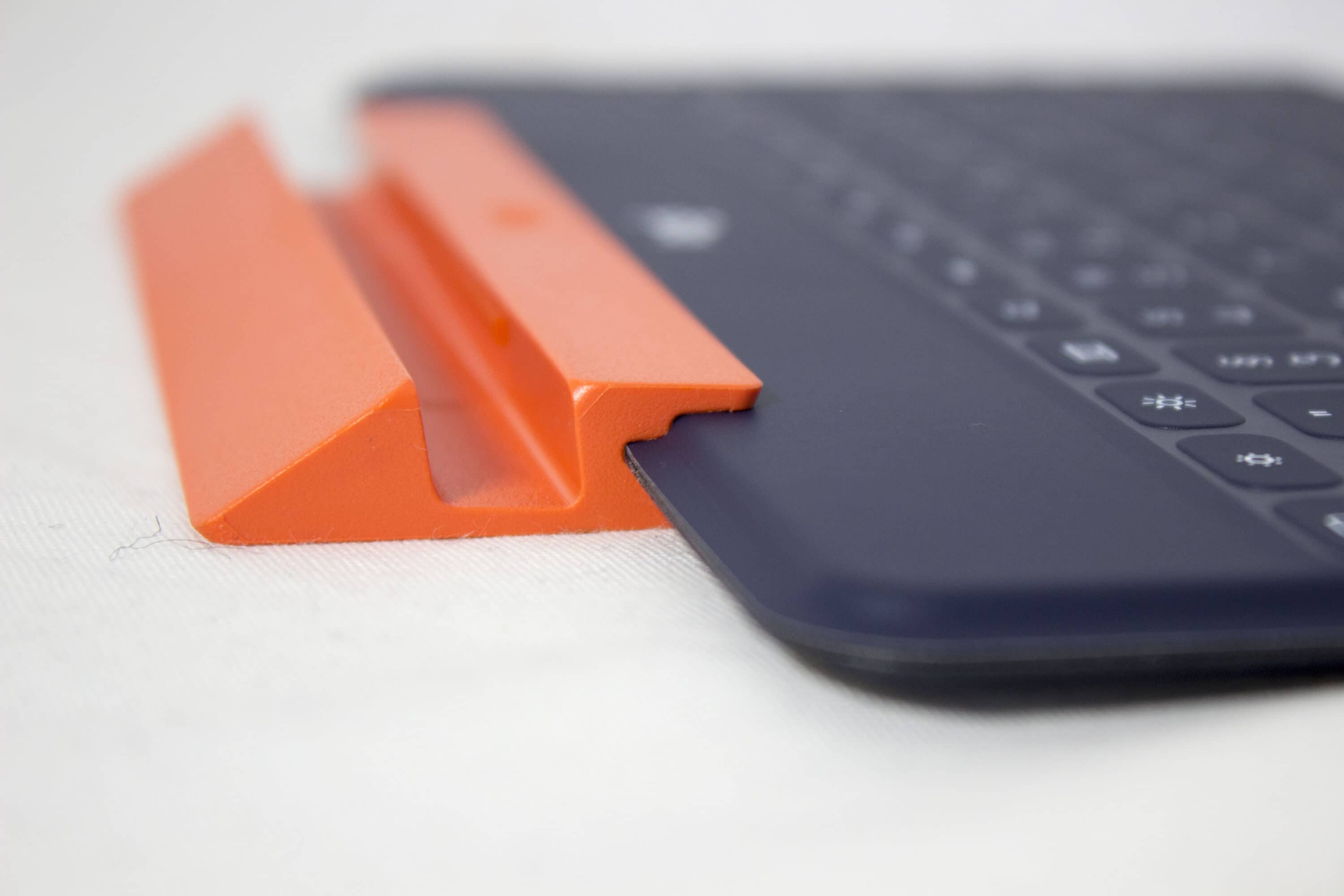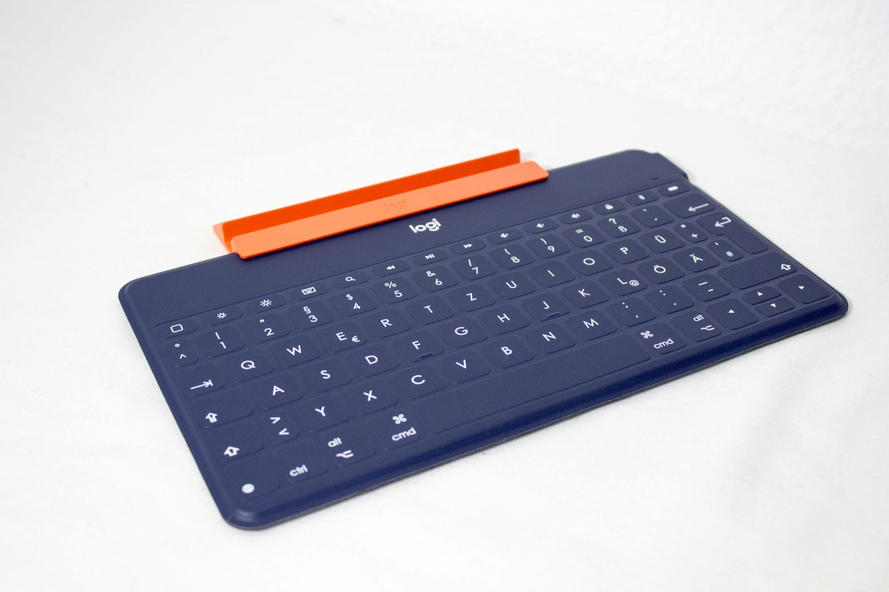Habt ihr etwas Platz auf eurer Arbeitsfläche, empfiehlt es sich den mitgelieferten Halter für Smartphones oder Tablets zu nutzen. Dadurch wird das Arbeiten mit der Keys-To-Go noch angenehmer. Durch ihr geringer Gewicht und kleinen Abmessungen fällt es nicht auf, wenn ihr Logitechs kleines Gadget dabei habt.