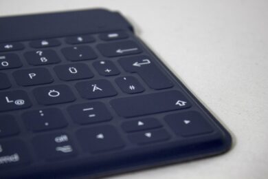 Durch die Größe ist eine Eingewöhnungsphase nicht zu umgehen. Am Anfang kommt es gerne vor, dass wir aus Versehen die falsche Taste drücken, beispielsweise Caps Lock anstatt Shift. Nach kurzer Zeit geht dass Tippen aber einfach von der Hand. Das liegt vor Allem an dem Feedback der Tasten. Obwohl die Keys-To-Go so dünn ist, könnt ihr es klar spüren, wenn ihr eine Taste drückt. Hierfür müssen wir Logitech unser Lob aussprechen. Natürlich fühlt sich das Tippen durch die Oberfläche nicht wie bei einer normalen Tastatur an.