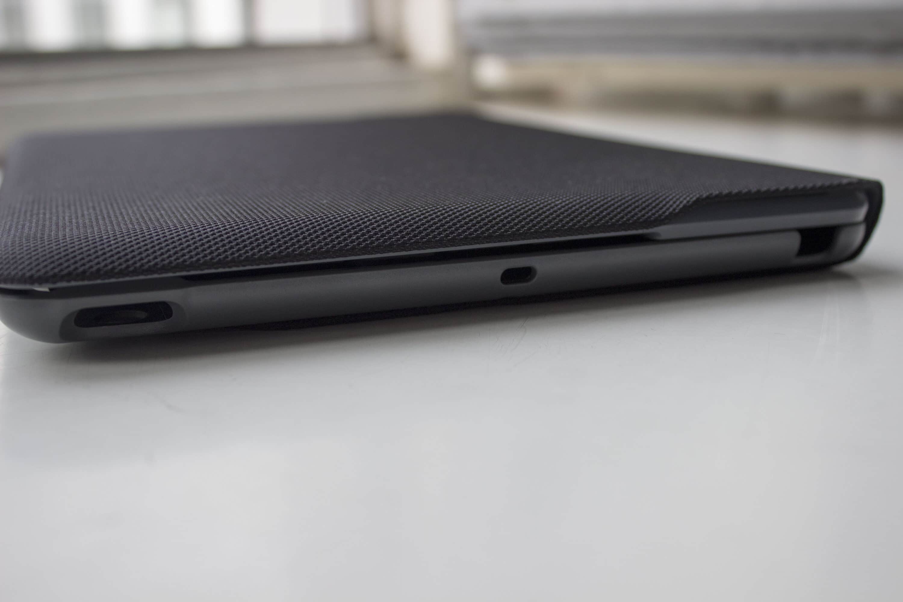 Sollte also eine gewissen Flexibilität beim Arbeiten unterwegs gewünscht sein, schaut euch das Slim Folio von Logitech. Ein Manko könnte aber das fehlende Trackpad sein, oder die geringe Neigungsfreiheit.