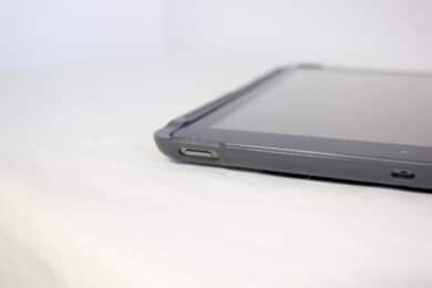 Zwar lässt sich das Slim Folio nicht eigenhändig laden, beispielsweise per USB, dafür soll die eingesetzte Batterie aber ganze vier Jahre halten. Falls sie doch einmal schlapp machen sollte, gibt es auch die Möglichkeit diese zu tauschen.