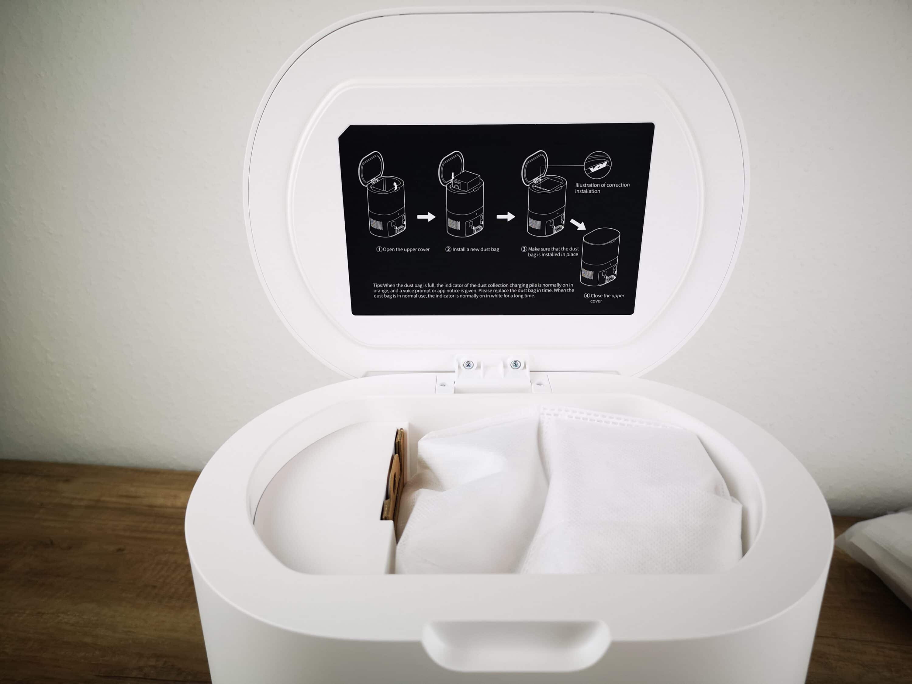 Die Geräuschkulisse beim Absaugen gleicht einem älteren 2000 Watt Staubsauger. Der Lärm ist aber nach einigen wenigen Sekunden wieder vorbei und der Saugroboter ist wieder bereit für die Arbeit. Im Inneren der Station ist Platz für einen Staubbeutel mit einer Fassung von 3 Litern.