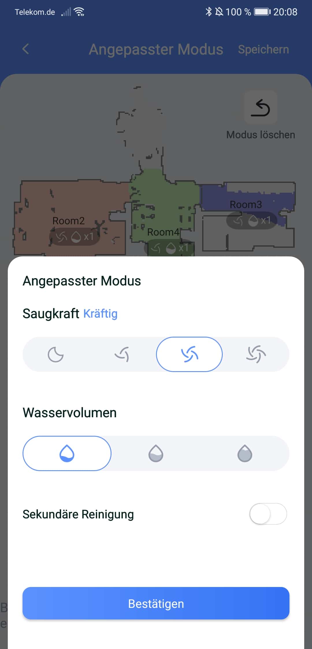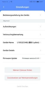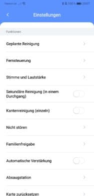Auch in den generellen Einstellungen finden sich viele nützliche Funktionen und Anpassungen wieder. Die Einstellung einer Reinigungsroutine stellte sich als sehr hilfreich heraus. So wird das Reinigen größtenteils automatisiert und es muss sich nur noch Gedanken über das Leeren des Beutels gemacht werden. Auch die Fernsteuerung stellte sich als sehr nützlich heraus, gerade wenn ein Bereich nicht gänzlich erkannt wird. Dann kann der Roboter einfach zum richtigen Ort gefahren und ab hier eine Reinigung gestartet werden. So wird der Rest des Raumes mit erfasst und in die Reinigungsroutine mit eingebunden. Dieses Vorgehen war in unserem Test leider zweimal nötig. Ebenfalls lässt sich die Häufigkeit der Absaugungen an der Station einstellen.
