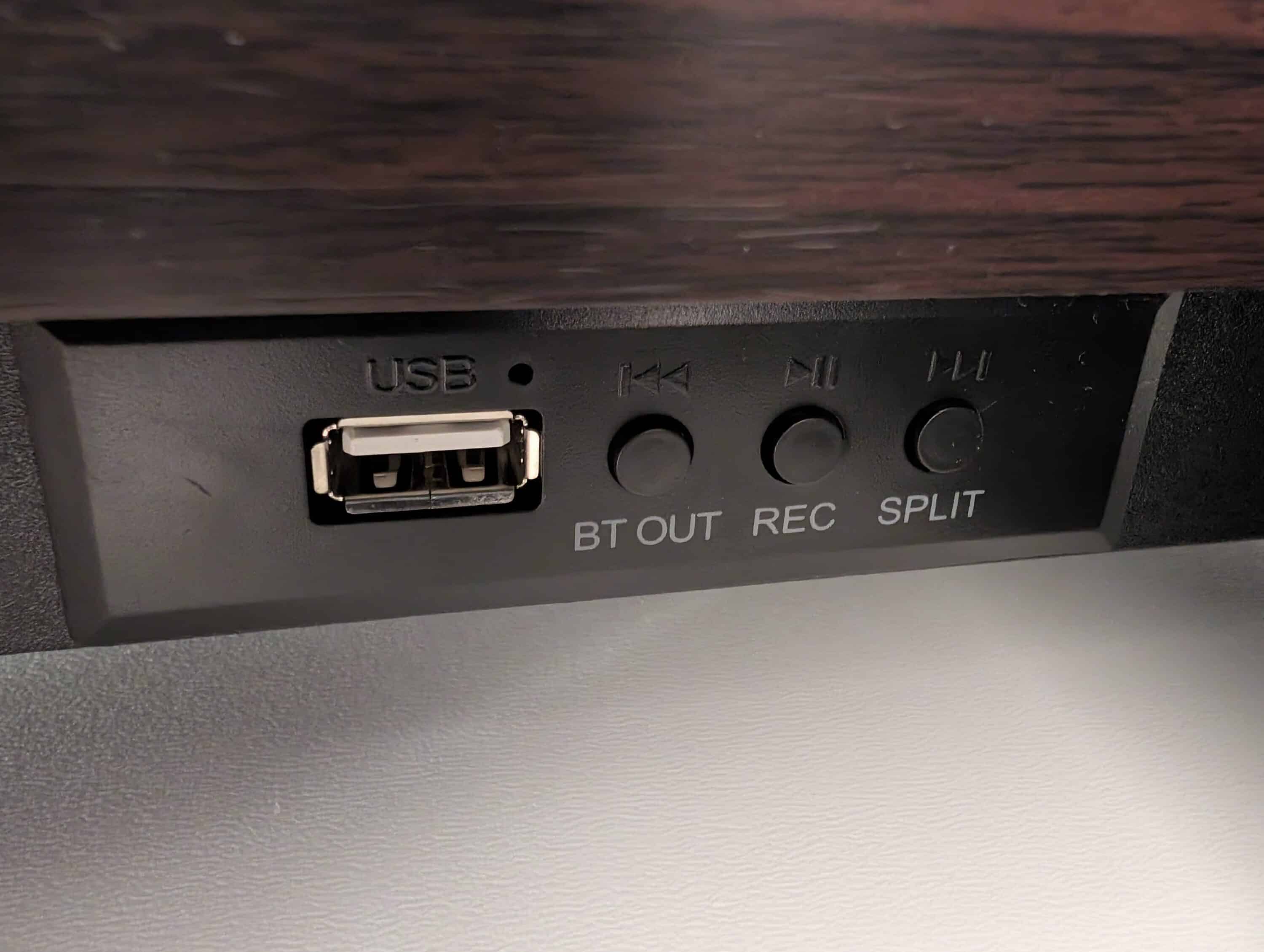 Mit seinen 5,6 kg bringt der Plattenspieler ein ordentliches Gewicht auf die Waage, was ihm eine gute Stabilität verleiht und für einen wertigen Eindruck sorgt. Leider macht Majority keine genauen Angaben zu den verwendeten Materialien im Gehäuse. Hier wäre etwas mehr Transparenz wünschenswert. Ich vermute, dass es sich beim Holz um MDF-Platten mit einer gemusterten Deckschicht handelt. Die Verarbeitung macht auf den ersten Blick einen ordentlichen Eindruck.