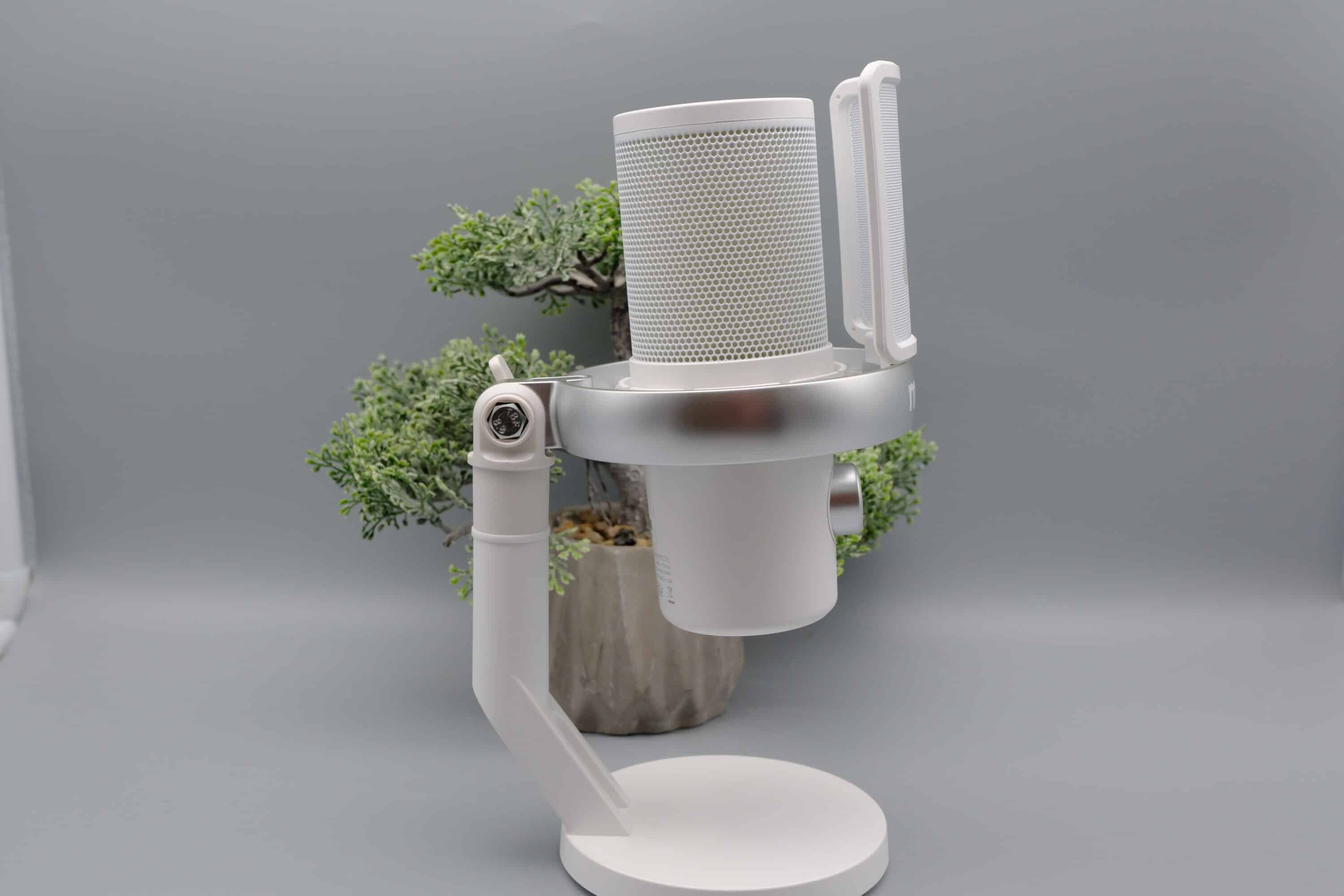Nettes Detail: Am Übergang zwischen Shock-Mount und Standfuß lässt sich platzsparend der USB-C-Receiver einsetzen – praktisch, wenn ihr das Mikrofon für die Nutzung unterwegs in euren Rucksack schmeißen möchtet. Der Receiver sitzt dabei so fest, dass er nicht versehentlich herausfallen kann.