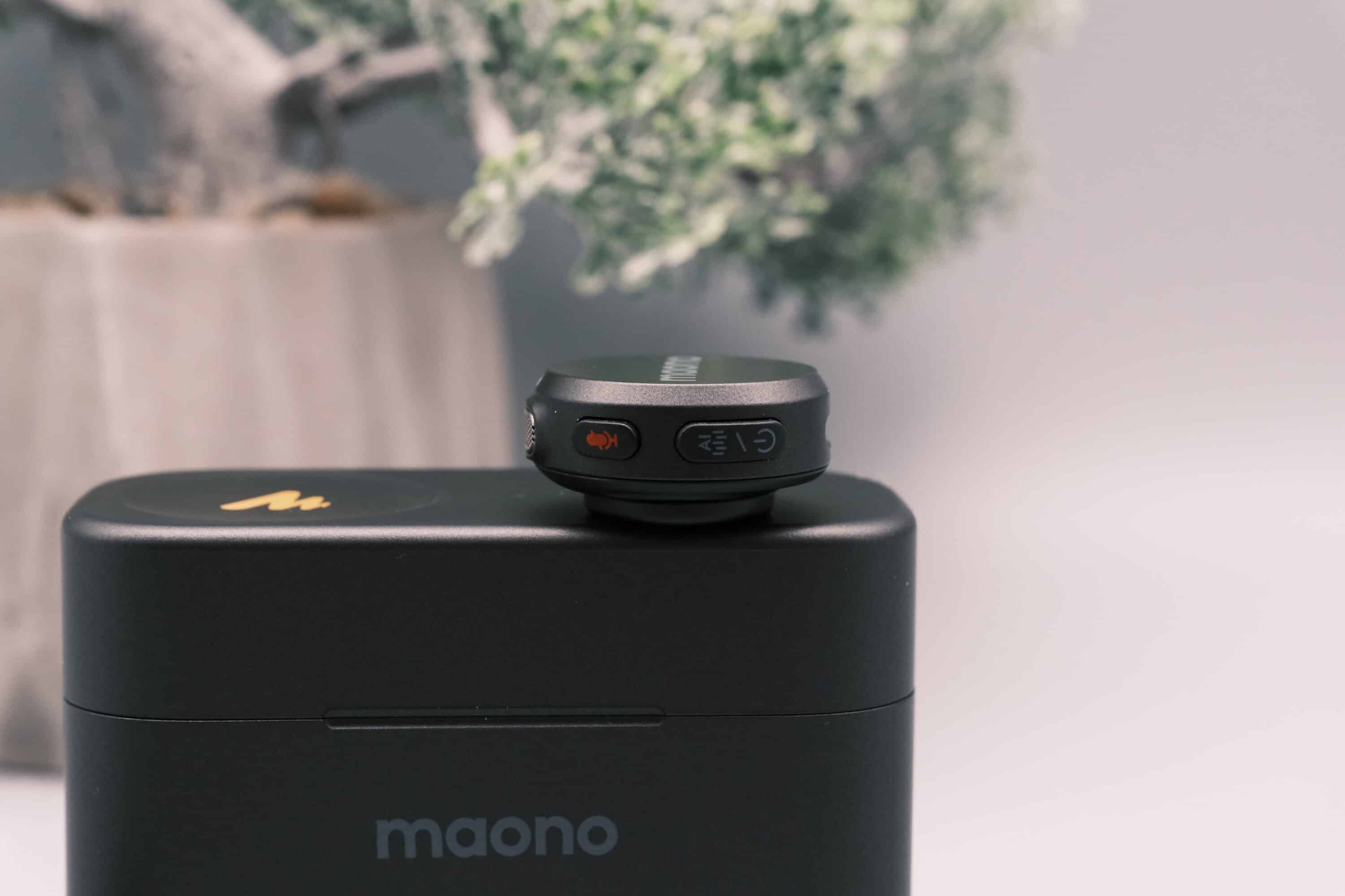 Portable Lavaliermikrofone sollten möglichst klein und unauffällig sein. Das gelingt dem Maono Wave T5 hervorragend. Die Sender sind kreisrund und kommen mit einer flachen Oberseite daher. Mit einem Durchmesser von gerade einmal 26 mm und einer Höhe von rund 16 mm sind sie deutlich kompakter als beispielsweise die Pendants von DJI und Co. Dabei bringt einer der Sender lediglich 9 Gramm auf die Waage.