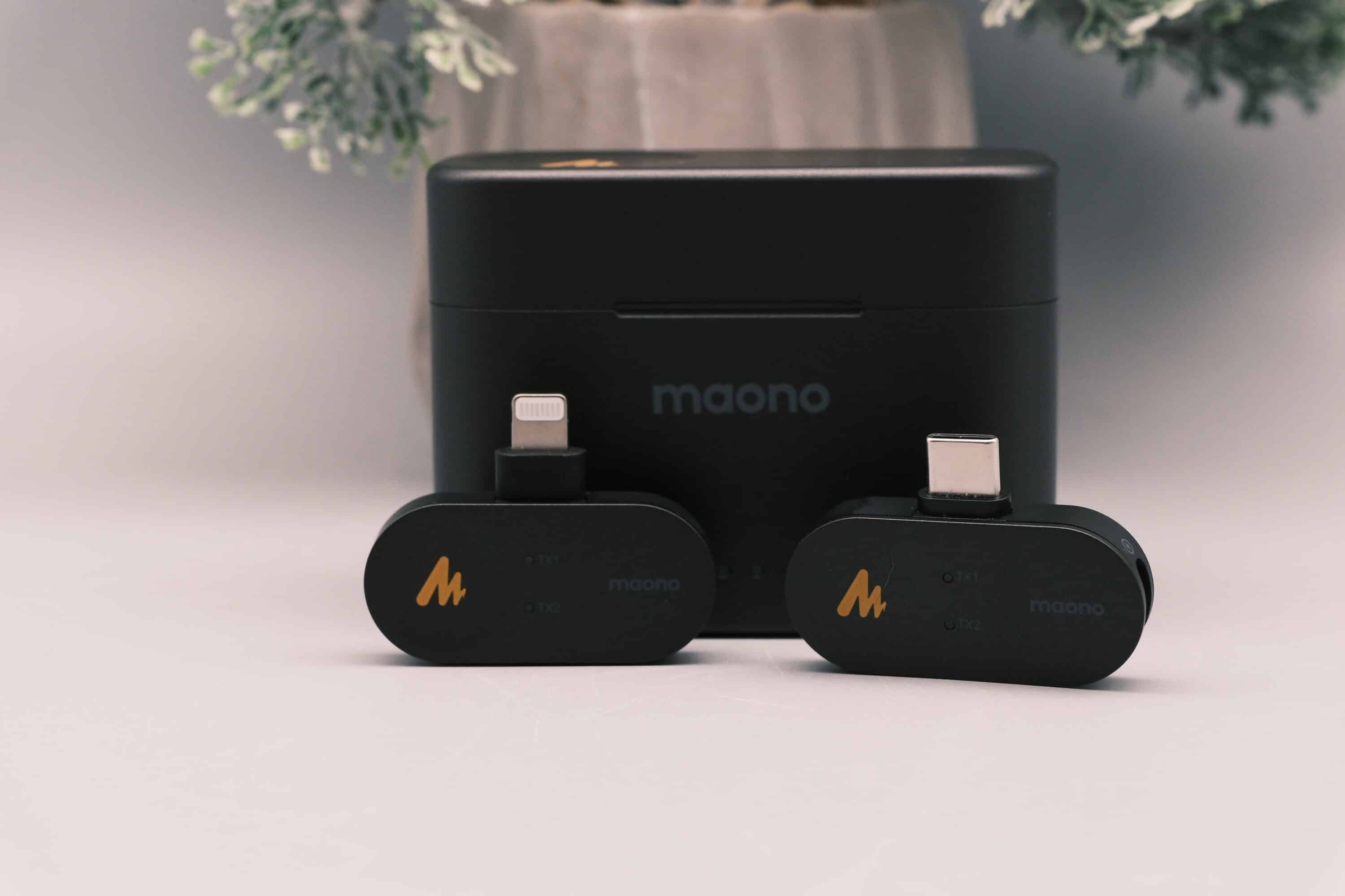 Die Einrichtung des Maono Wave T5 ist kinderleicht. Am Smartphone müsst ihr einfach den Empfänger verbinden, woraufhin die Sender sich automatisch koppeln, was auf beiden Einheiten durch eine blaue Status-LED angezeigt wird und das war es dann auch schon.