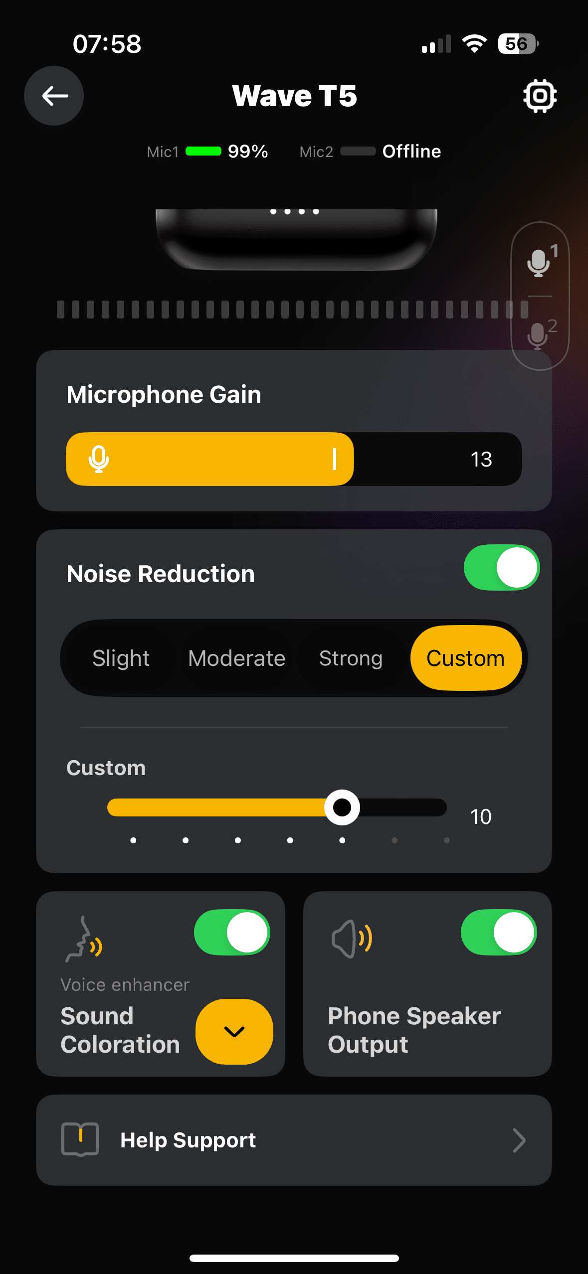 Während das Maono Wave T5 keinen direkten Equalizer bietet, mit dem ihr Einfluss auf den Klang nehmen könnt, lässt sich mit insgesamt vier „Sound Coloration“-Presets innerhalb der Begleit-App sehr Wohl die Stimme etwas verändern. Hier stehen euch folgende Optionen zur Wahl:
