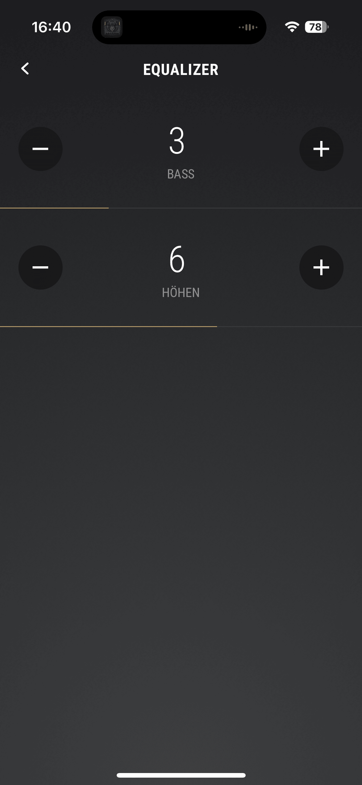 Das ist natürlich durchaus praktisch, die Musiksteuerung oder Bass- und Höhenanpassung auch aus der Entfernung vornehmen zu können, weitere Einstellungen oder anpassbare Equalizer suchst du hingegen vergebens. So wird die App daneben lediglich für Firmware-Updates benötigt.