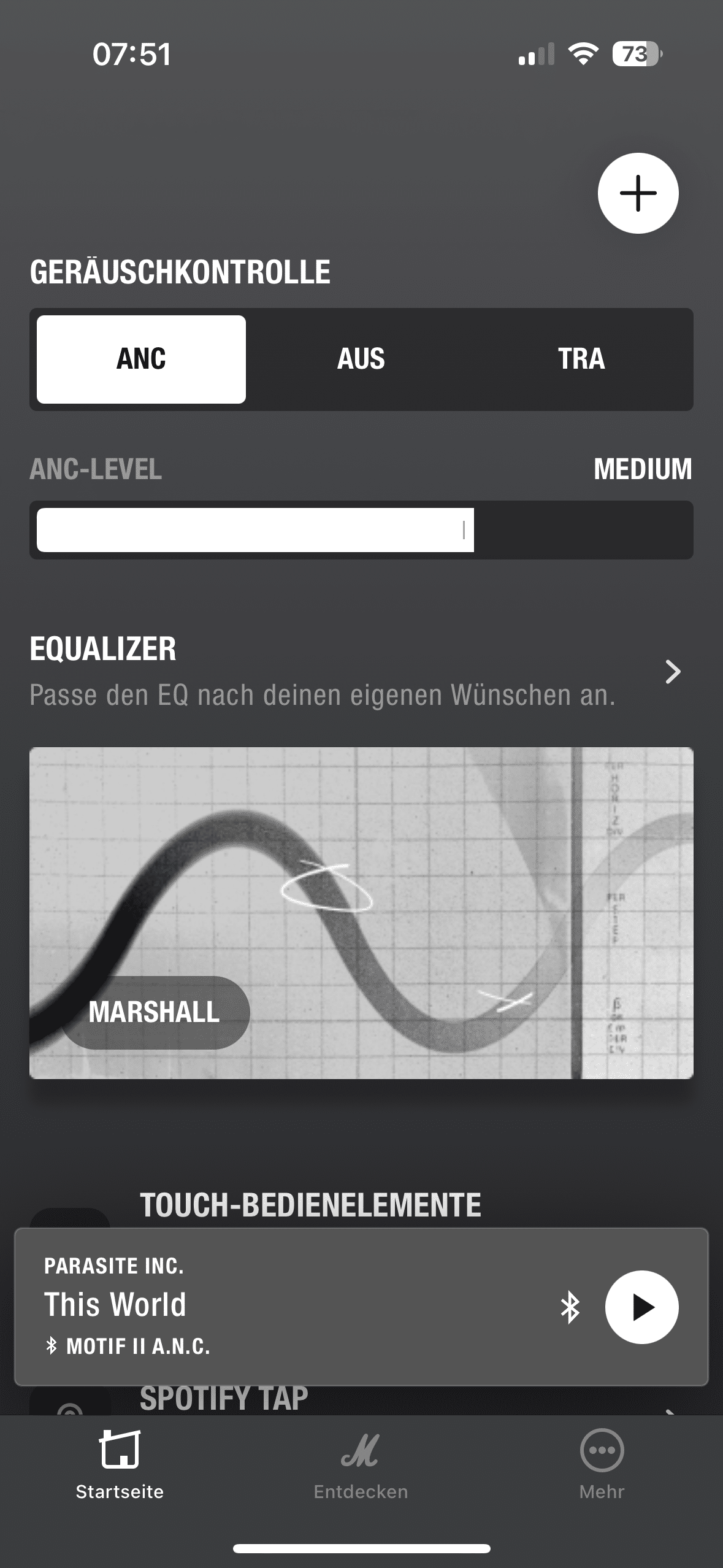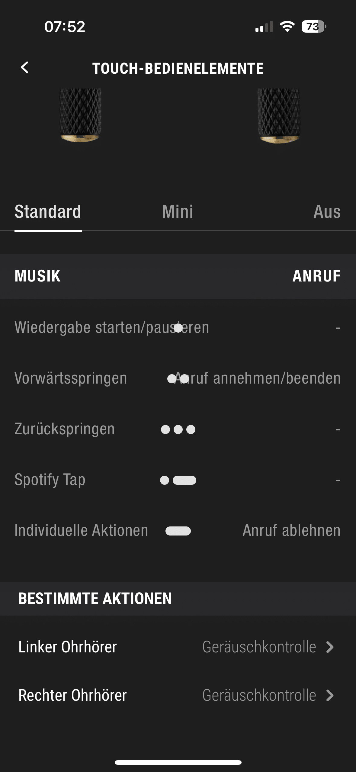 Außerdem kannst du den Klang anhand eines 5-Band-Equalizers anpassen oder eines von fünf verschiedenen Presets auswählen. Weiterhin kannst du, zumindest in Teilen, die Touch-Steuerung anpassen und Optionen für die Akku-Schonung einstellen. Auch Spotify Tap kann über die App eingestellt und angepasst werden.
