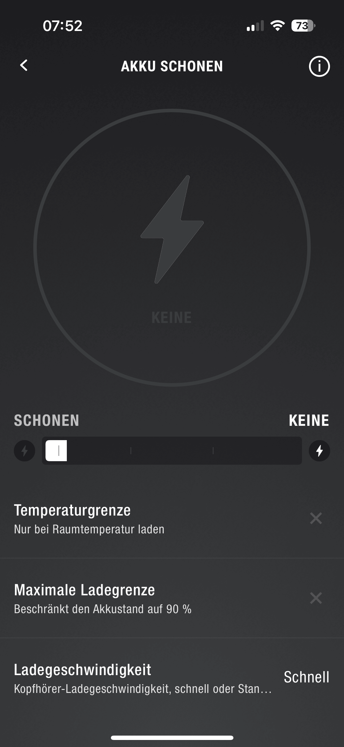 Hier kannst du beispielsweise einstellen, dass der Akku nur zu maximal 90 Prozent vollgeladen werden soll oder, dass das Laden lediglich bei Raumtemperatur vonstatten geht. Auch die Ladegeschwindigkeit kann reduziert werden, alles im Sinne der Nachhaltigkeit also – sehr löblich.