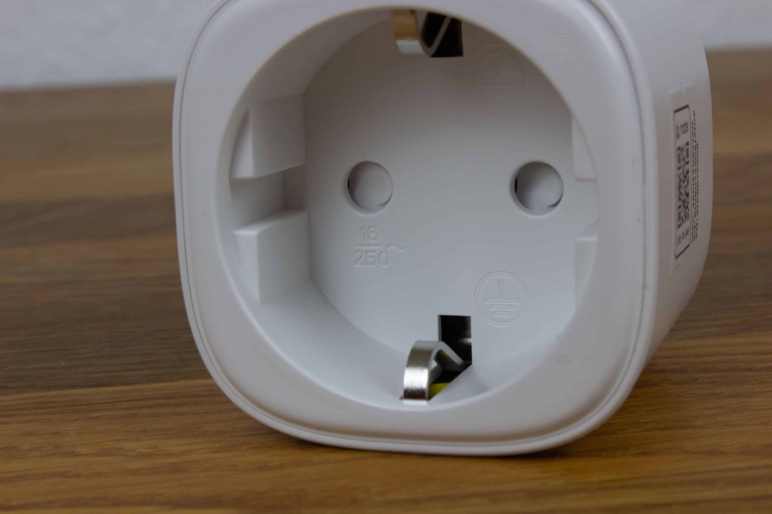 Ein Berührungsschutz ist zwar gegeben, dennoch sollten wir erwähnen, dass nur die rechte Seite des Steckers ausgeschaltet wird. Das ist in so weit wichtig, dass je nach Orientierung des Steckers gegebenenfalls die Phase nicht abgeschaltet wird und trotzdem 230V in das angeschlossene Gerät fließen. Die Meross MSS315 Steckdose kann mit 16 Ampere arbeiten, theoretisch sind also knapp 3600 Watt der Verbraucher möglich. Ein guter Wert, einige namenhafte Hersteller bieten nur 10 Ampere. Leider hat die Steckdose einen recht hohen Verbrauch von 1,1W im Betrieb und 0,6W im Standby.
