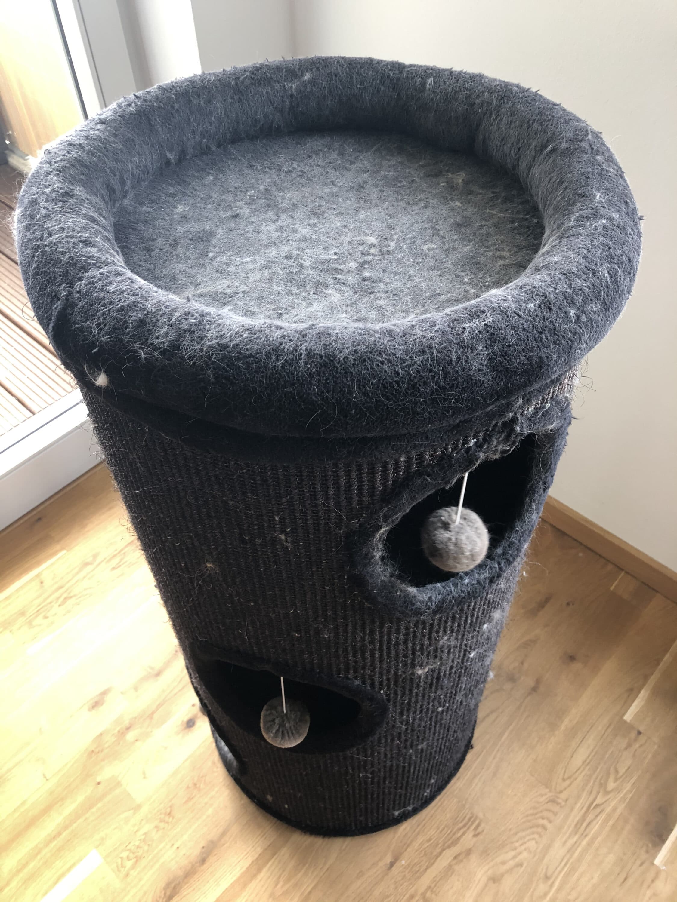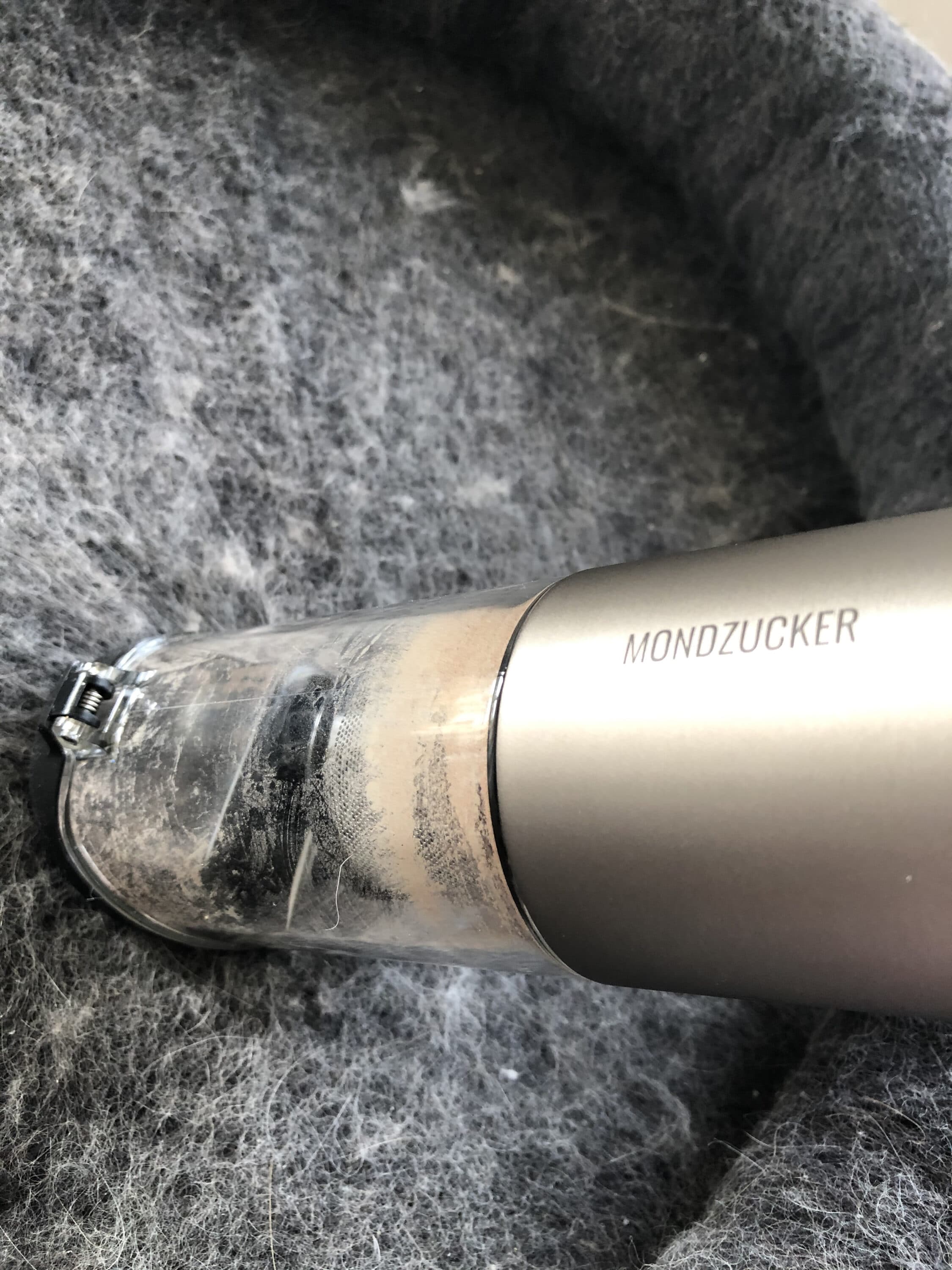 Dementsprechend wollte ich den kleinen Handstaubsauger einmal mit einer besonders großen Herausforderung konfrontieren – Der Kratztonne meiner Katze. Beim allwöchentlichen Wohnungs-Putz stellt sich der Entspannungsort meines langhaarigen Mitbewohners als wirklich unliebsamer Reinigungsort dar, der stets jede Menge Zeit und Geduld frisst. Selbst mein Dyson V10 hat jede Woche mit den Haaren zu kämpfen. Umso überraschender war das Ergebnis des kleinen Mondzucker VX.