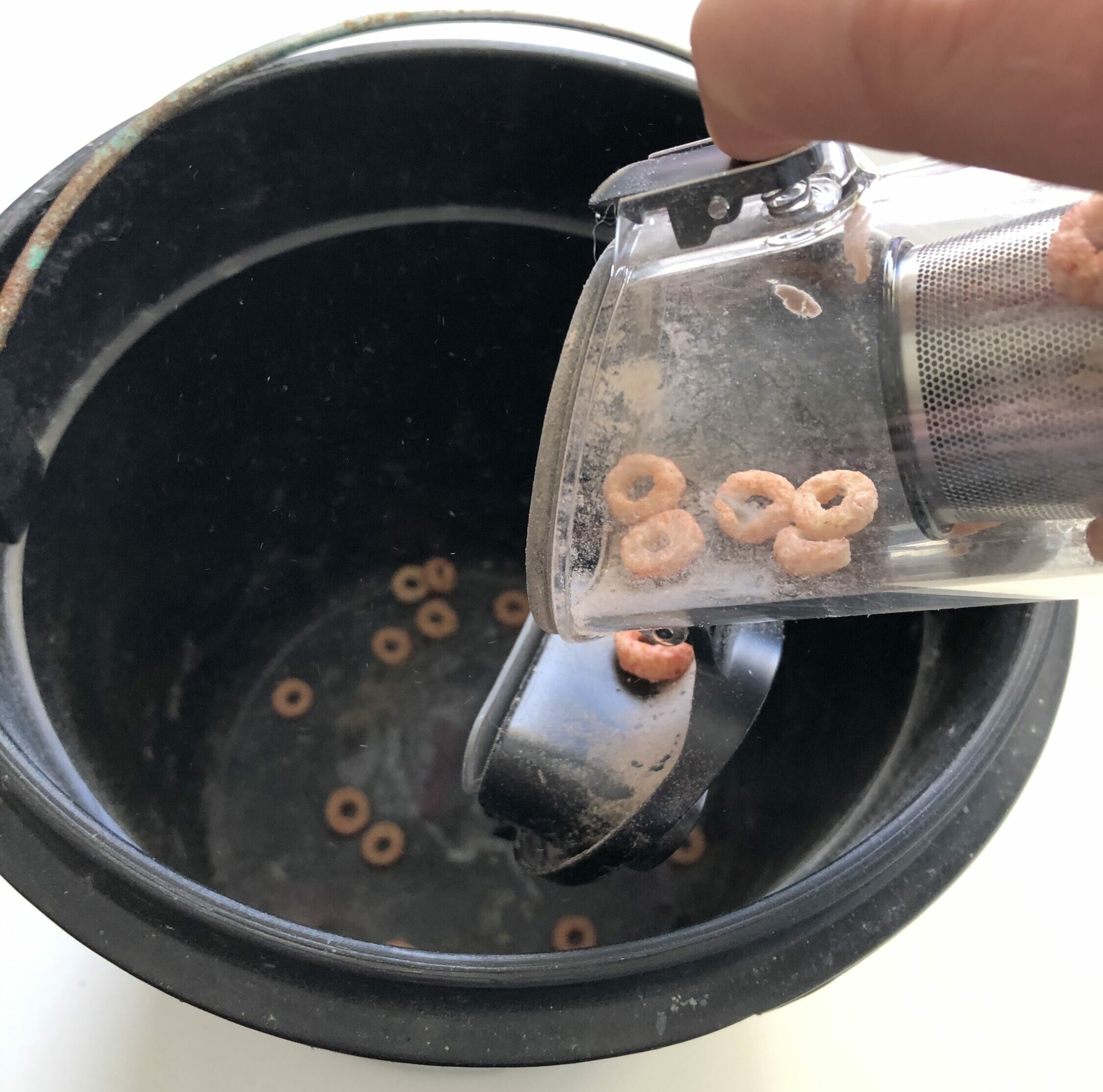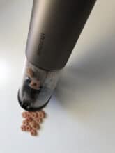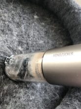 Der Hersteller selbst bewirbt den kleinen Hand-Staubsauger als optimalen Staubsauger für die Beseitigung von Tierhaaren. Und das Endergebnis meines persönlichen Tests kann sich mehr als sehen lassen. Ich hätte selbst auf der zweiten Stufe nicht mit diesem Ergebnis gerechnet. Die Kratztonne meiner Katze wurde zuverlässig von dem Großteil der Haare befreit. Doch damit nicht genug. Obendrein fand ich im Schmutzbehälter des Handstaubsaugers jede Menge Staub und Schmutz vor, den ich äußerlich nicht vermutet hätte. Hier macht sich das zweifache Filtersystem mehr als bemerkbar.