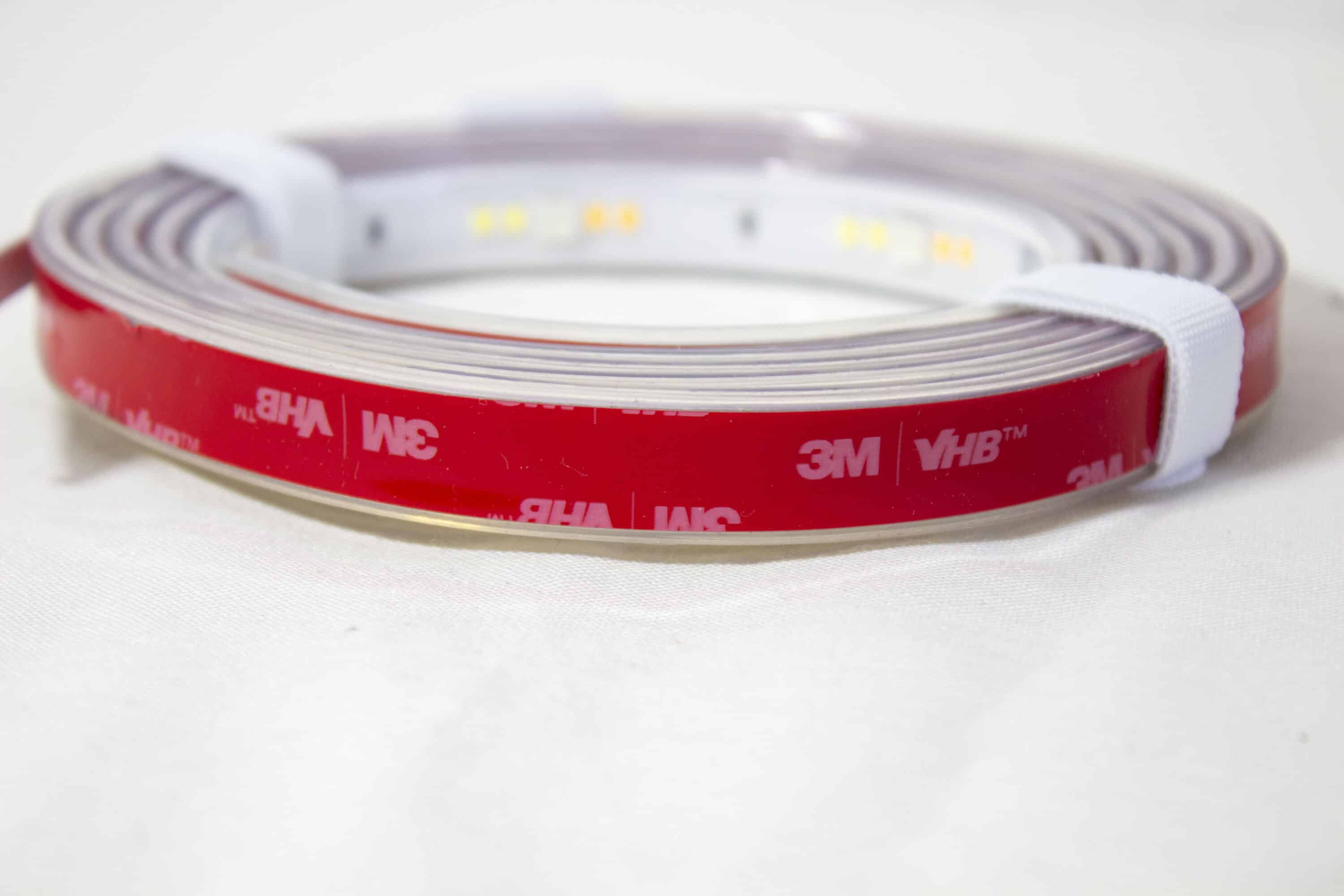 Zur Montage ist auf der Unterseite des Lightstrips direkt ein Klebestreifen angebracht. Beim Lightstrip ist außerdem auffällig, wie dick dieser ist. In der Regel sind die gekauften LED-Streifen immer ohne Gummischutz, hier geht Nanoleaf wohl auf Nummer sicher. Vor Allem kommt so niemand auf die Idee diese kaputt zu schneiden.