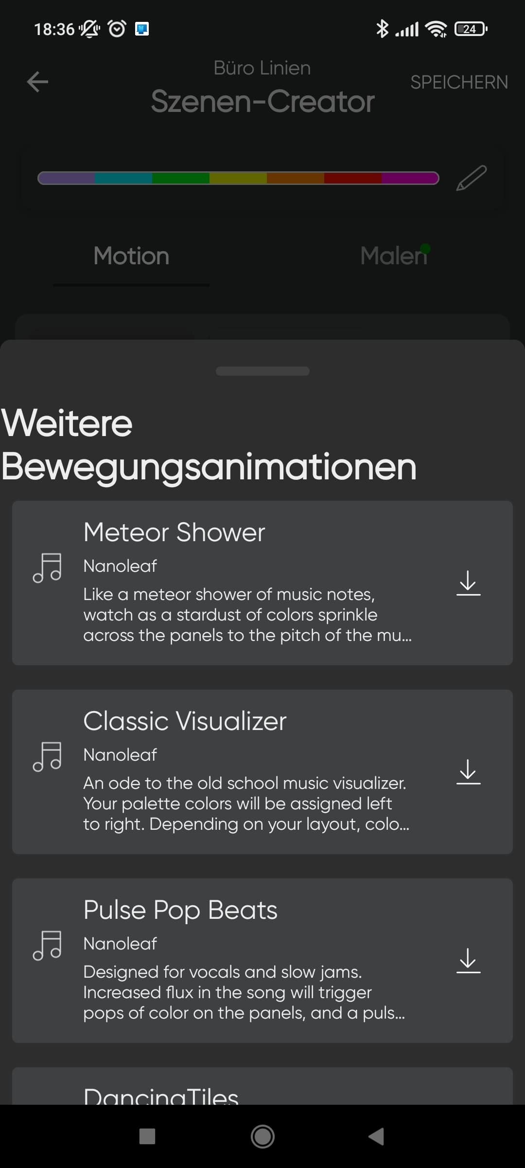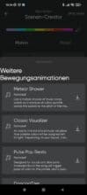 Nanoleaf baut aber ein ganz anderes Feature ein. Wir können einstellen, dass die Lines auf Umgebungsgeräusche wie beispielsweise Musik reagieren soll – der „Rhythmus“-Modus. Auch hier können eigene Effekte angelegt werden. Für die Unkreativen können diese auch heruntergeladen werden.