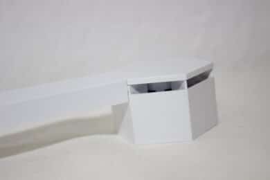 Von jedem Steckverbinder können wir die Nanoleaf Lines in fünf verschiedene Richtungen anbringen. Schon abgezogen ist die „Eingangsrichtung“. Jeder Steckverbinder hat also sechs freie Plätze. Um die Lines optisch abzurunden, gibt es für jeden Verbinder noch eine Plastikkappe. So schließen die Verbinder genau mit den Linien ab.