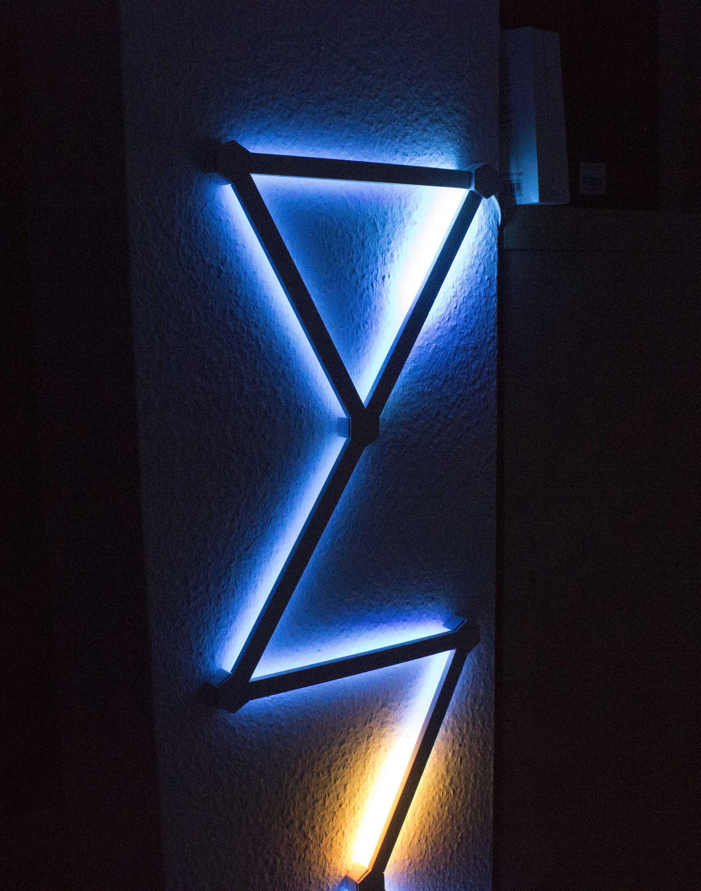 Um an der Wand, Decke oder eurem sonstigem Montageort zu halten, werden insgesamt 9 Steckverbinder mitgeliefert. Mit ihnen ist es möglich die Lines frei anzuordnen. Ebenso dabei ist eine Steuereinheit, inklusive der Stromversorgung. Hier beginnt im Grund jedes Muster. Zur einfach Montage hat jeder Steckverbinder ein Klebepad. Falls euch das zu unsicher ist, könnt ihr die Verbinder mit Schrauben befestigen.
