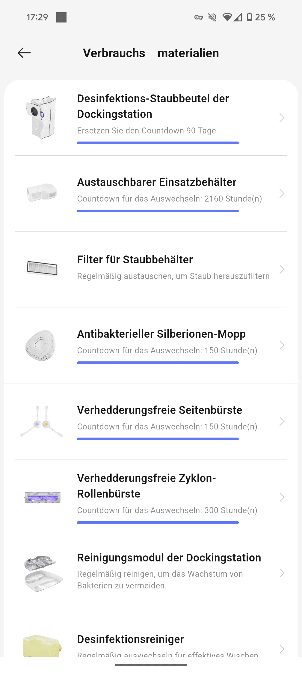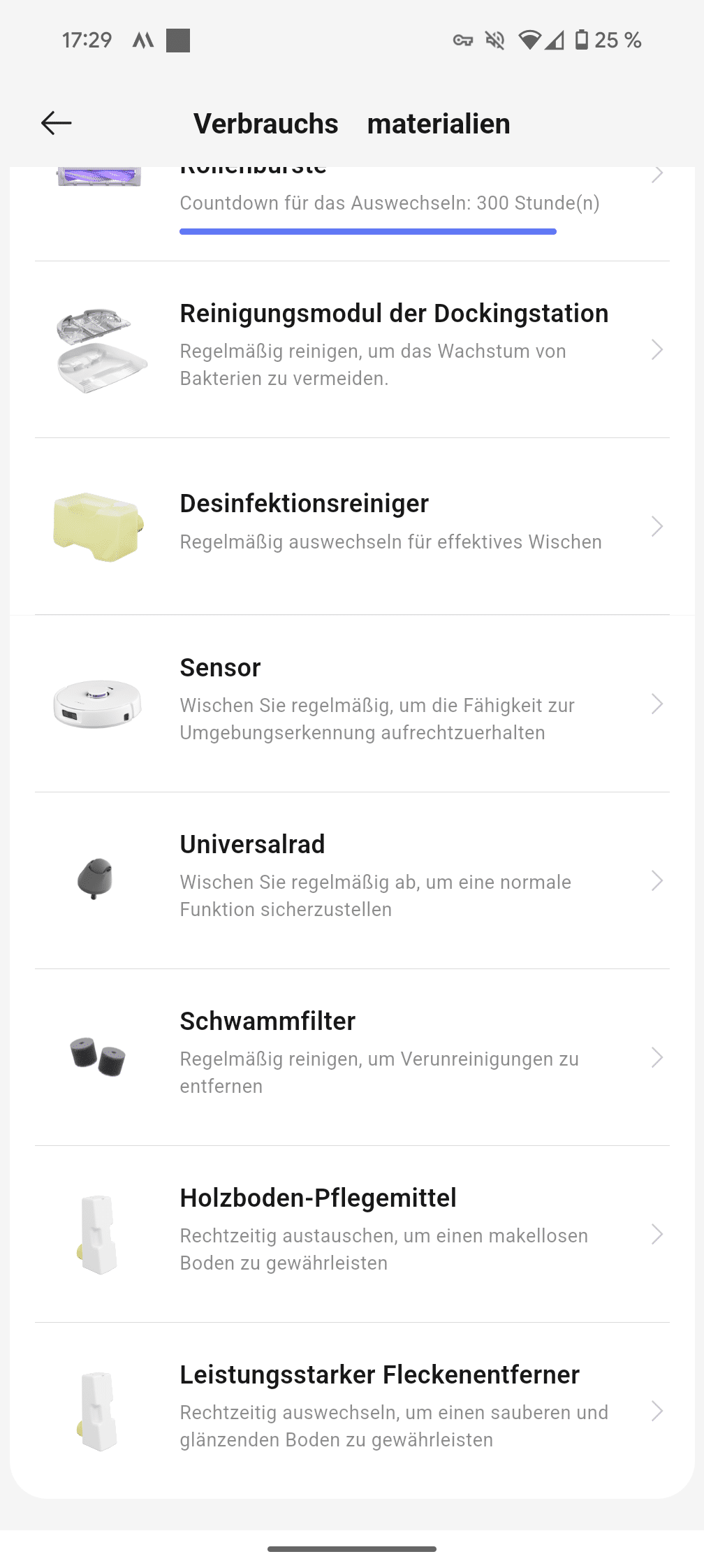 Gelegentlich stehen „größere“ Wartungsarbeiten an: Staubbeutel in der Station wechseln (je nach Nutzungsverhalten), HEPA-Filter austauschen (alle 6 Monate) und Seitenbürsten ersetzen (alle 6-12 Monate). Die Hauptbürste sollte monatlich kurz gereinigt werden. Praktisch: Die App informiert über den aktuellen Zustand aller Verbrauchsmaterialien und zeigt an, wann was getauscht werden muss.