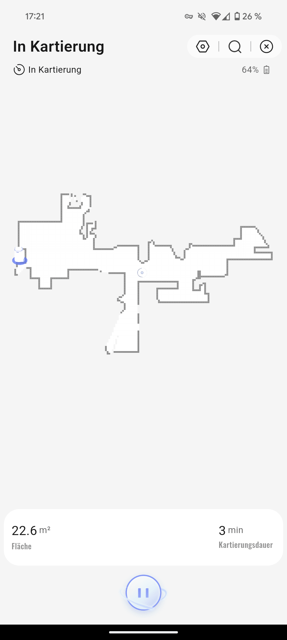 Die erste Kartierungsfahrt durch unsere 50-m²-Testwohnung dauerte rund 5 Minuten. Schon hier zeigt sich eine klare Stärke: Der Roboter arbeitet sehr zielstrebig und irrt kaum umher. Keine endlosen Suchfahrten oder planloses Herumkurven wie bei anderen Modellen. Die nachträgliche Kartenbearbeitung ist allerdings weniger durchdacht als bei teureren Modellen. Hier merkt man den Preisunterschied – Räume lassen sich zwar anpassen, aber die Funktionen sind nicht ganz so ausgereift.