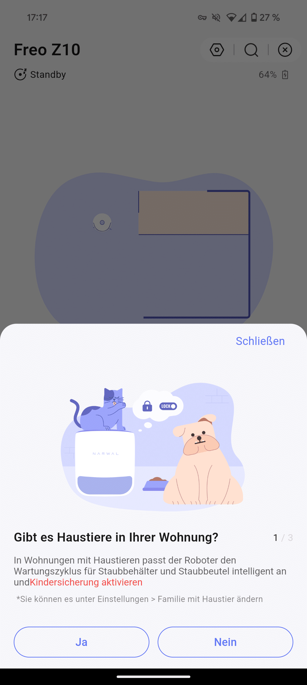 Die Inbetriebnahme verläuft problemlos. Station aufstellen, Wassertanks befüllen, Narwal-App herunterladen und QR-Code aus dem Quick Start Guide scannen – nach etwa zehn Minuten ist der Freo Z10 einsatzbereit. Die App führt Schritt für Schritt durch das Setup und erklärt auch weniger technikaffinen Nutzern alle wichtigen Punkte.