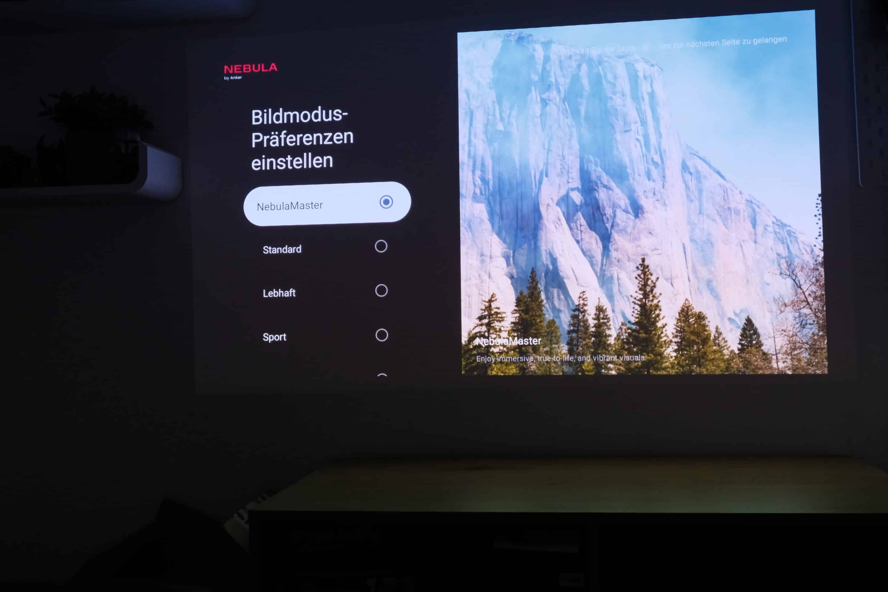 Neben NebulaMaster stehen verschiedene Bildmodi zur Auswahl, darunter ein Film- oder Spielemodus. Zudem könnt ihr selbst Kontrast, Helligkeit, Sättigung und weitere Parameter justieren. Als praktisch erweist sich darüber hinaus die Erkennung der Wandfarbe, die das Bild automatisch an die jeweilige Umgebung anpasst.