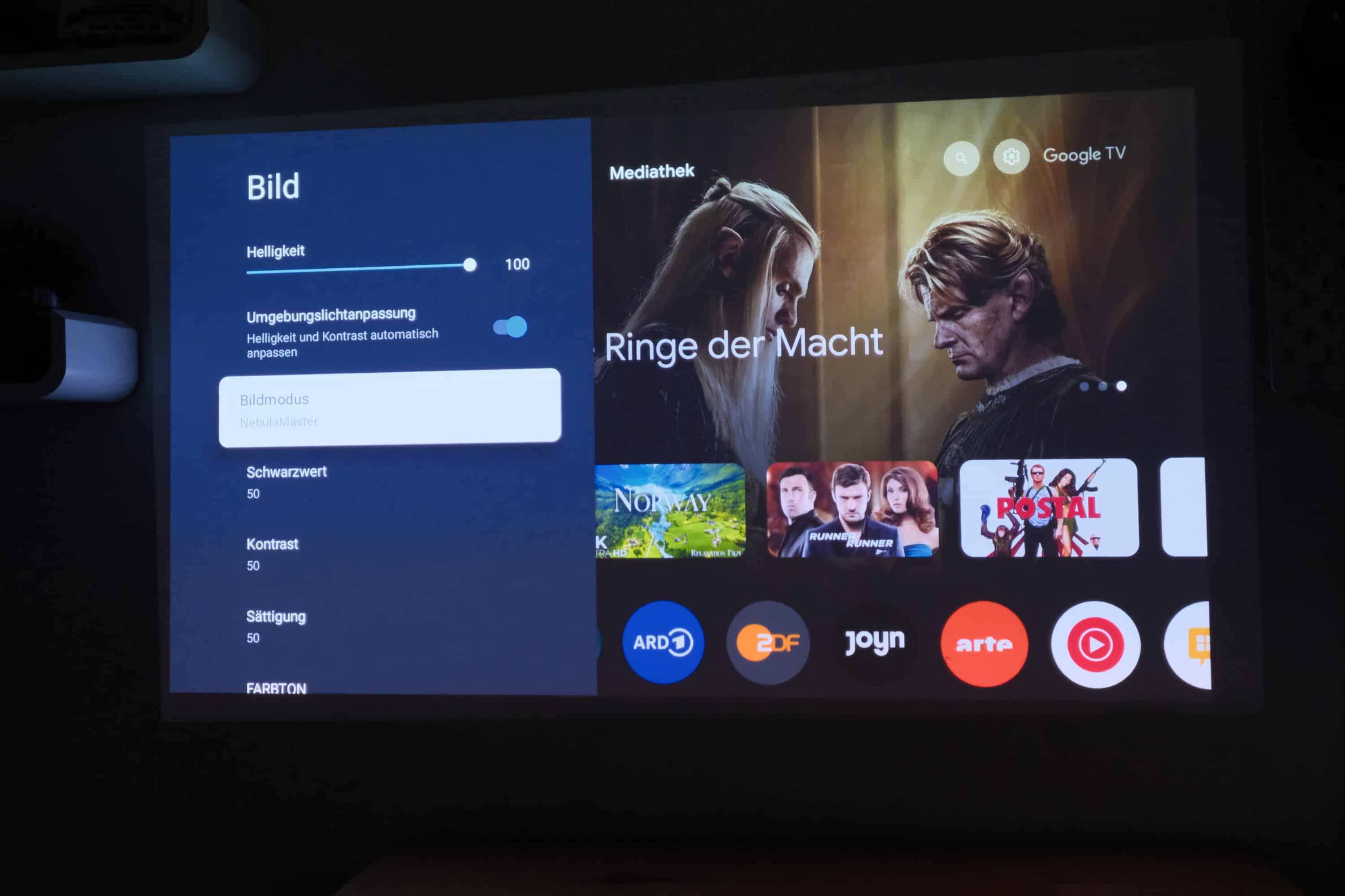 Ein großer Pluspunkt des Nebula Cosmos 4K SE ist die simple Einrichtung. Beamer mit Strom versorgen, einschalten und schon kann es losgehen. Die Einrichtung erfolgt über die Google Home-App, sofern ihr euch für den smarten Google-TV-Betrieb entscheidet. Alternativ ist diese auch direkt über den Beamer möglich.