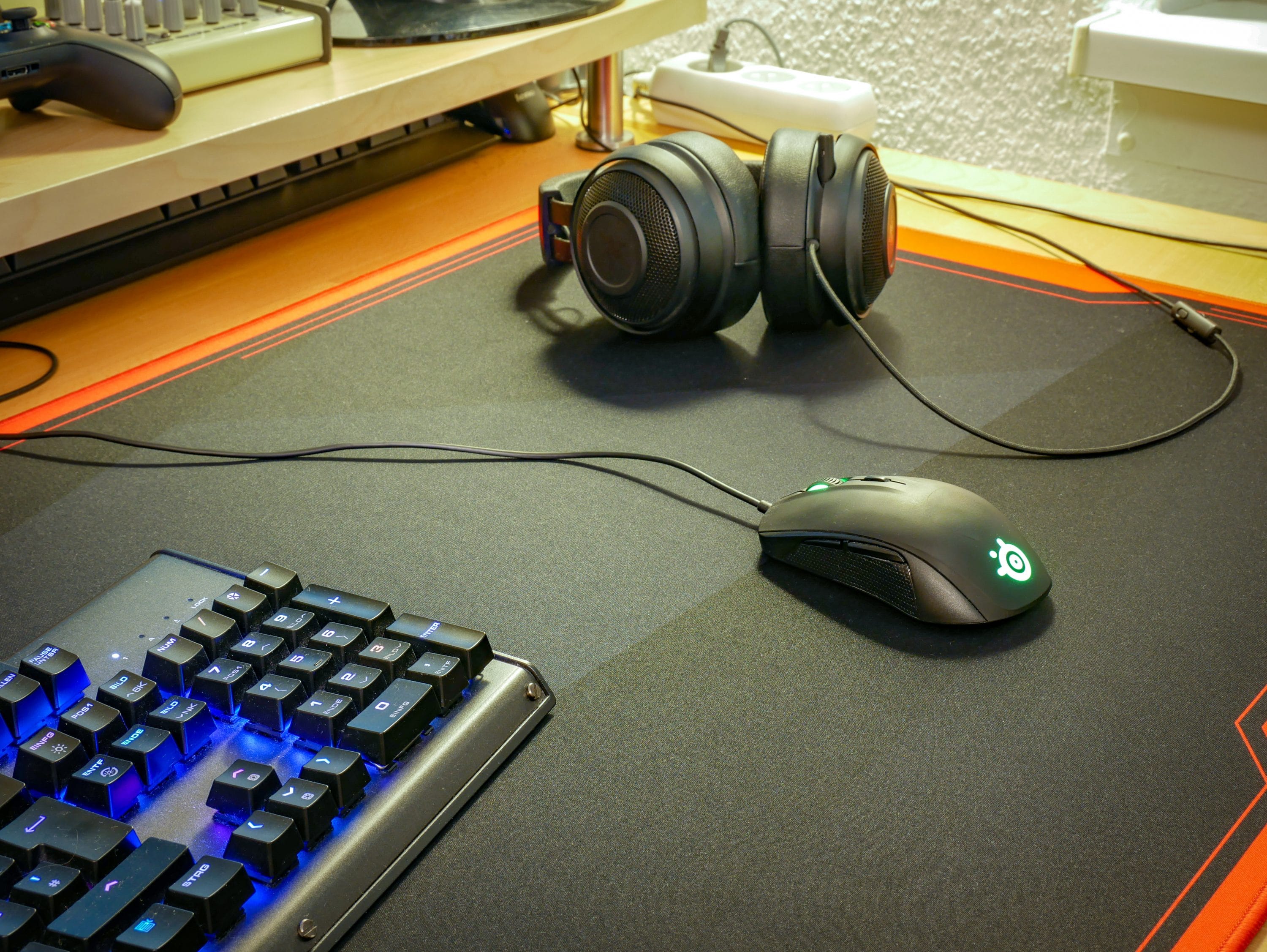 Praktisch ist auch, dass die Oberfläche materialbedingt Flüssigkeitsabweisend ist. So ist das Pad nicht gleich ruiniert, falls man versehentlich sein Getränk darauf verschüttet hat. Einfach weg wischen und schon kann weiter gezockt werden.