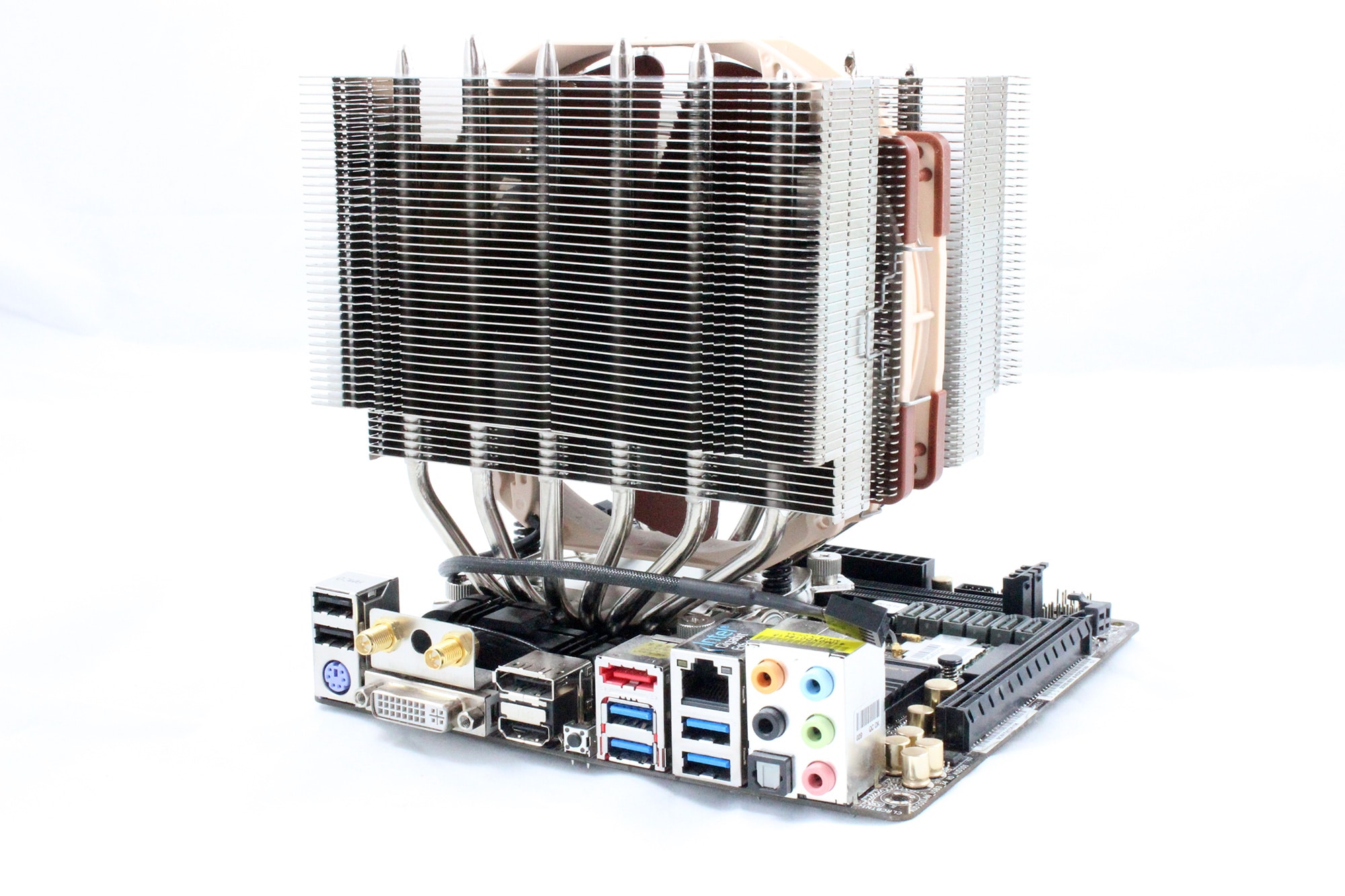 Der Einbau in ein kleines Gehäuse, für das der NH-D15S gemacht ist, erfordert ein wenig Geduld. Denn auch wenn der CPU-Kühler für kleine Gehäuse gemacht ist, so ist er doch groß und der Platz wird eng. Letztlich passt aber alles perfekt rein.