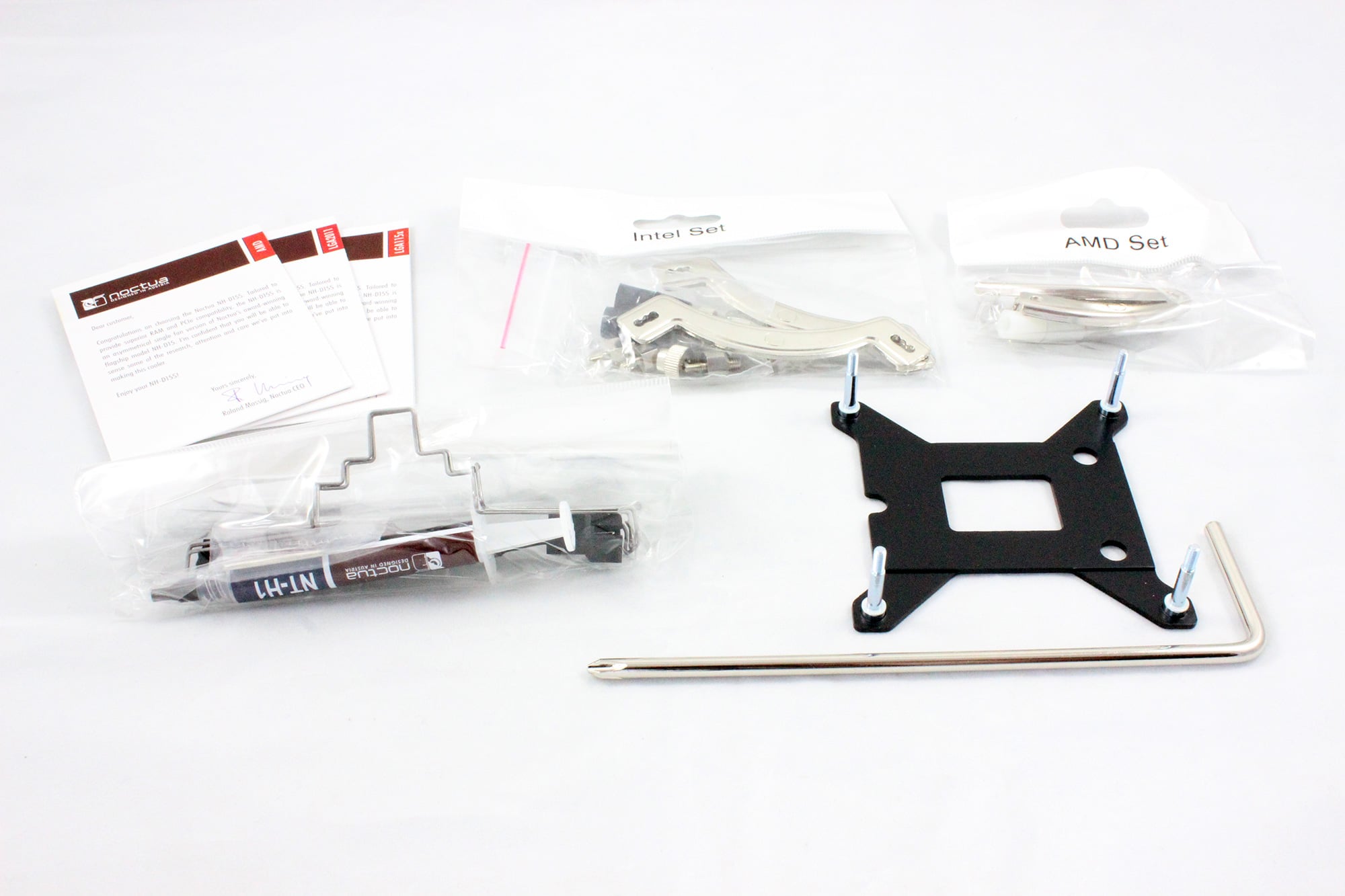 Außerdem enthalten sind die Spezialschrauben für das Noctua-eigene SecuFirm2-System, wodurch sich der Kühler besonders einfach anbringen lässt. Für dieses ist auch extra ein Schraubendreher dabei.