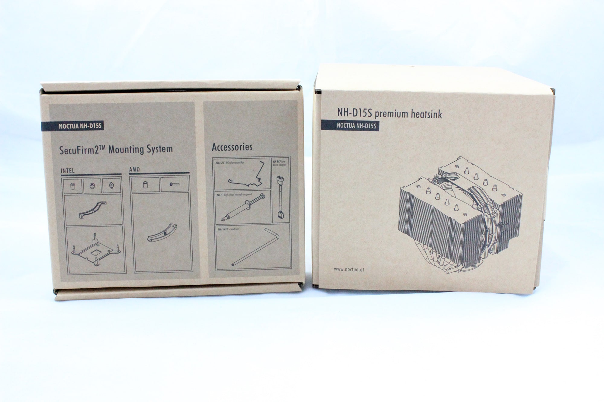 Geliefert wird der Noctua NH-D15S in der von Noctua gewohnten braunweißen Verpackung. Im Inneren ist alles sehr gut verpackt, gepolstert und sauber voneinander getrennt.