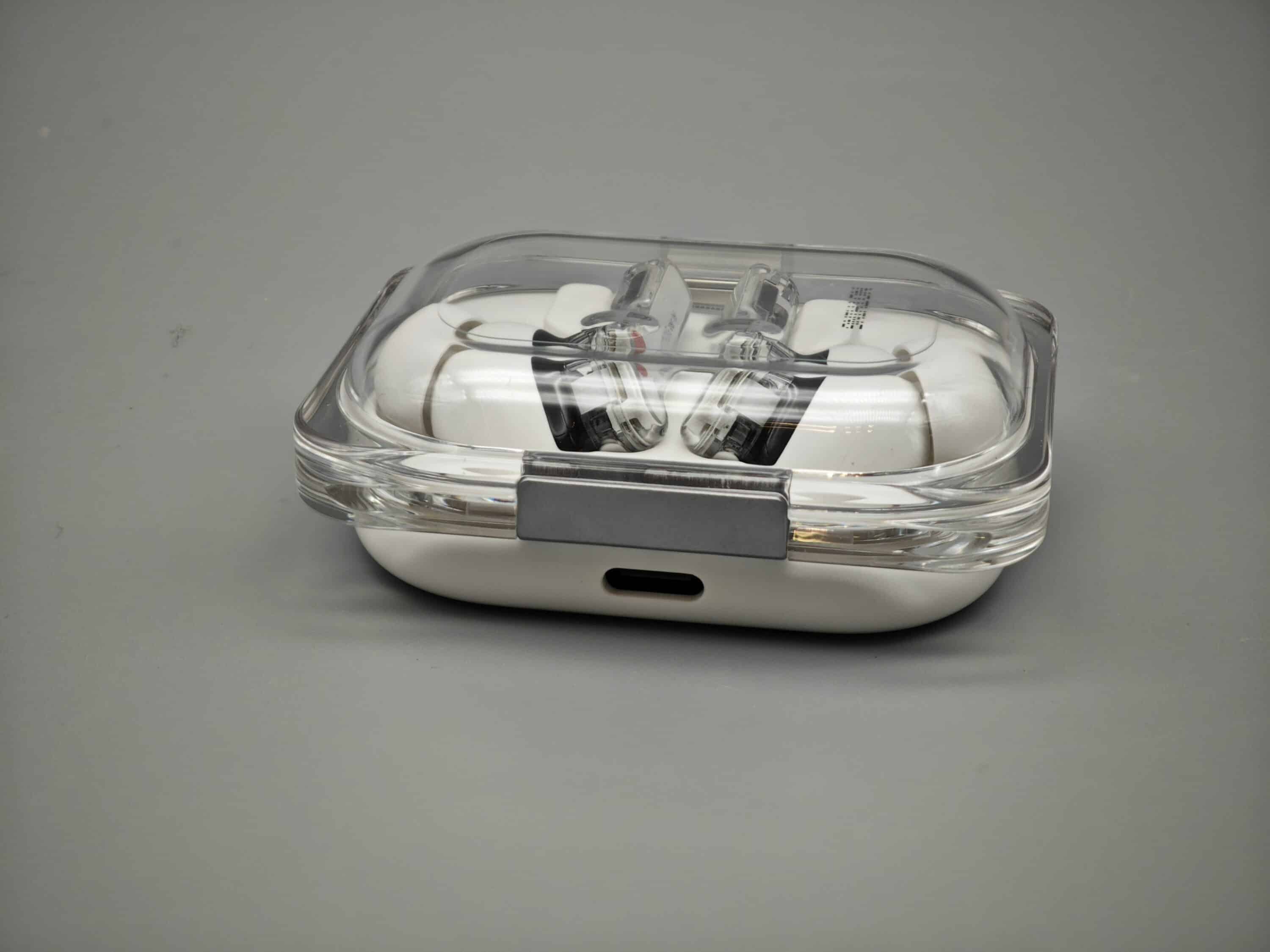 Mit den handlichen Abmessungen von 47,6 mm x 63,3 mm x 22,7 mm passt das Ear (a) Case noch besser in die Hosentasche, dafür muss allerdings auf eine kabellose Ladefunktion verzichtet werden. Geladen wird ausschließlich per USB-C.