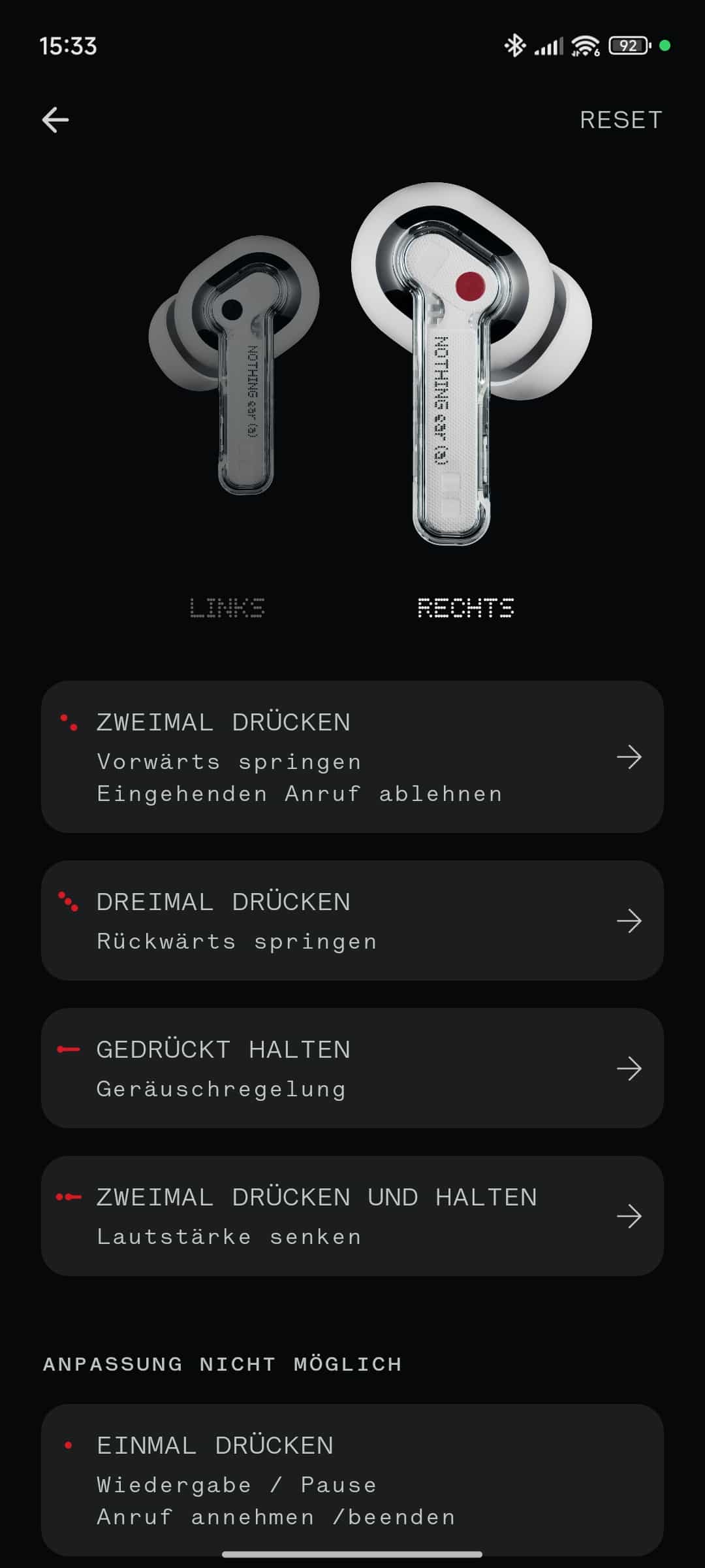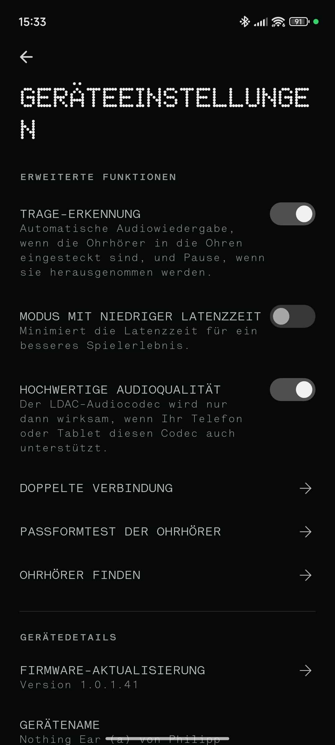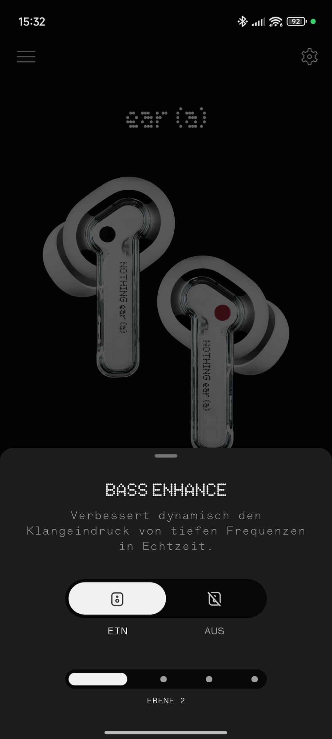 Schade hingegen: Der exzellente und unglaublich detailliert anpassbaren 8-Band-Equalizer bleibt ebenso den teureren Nothing Ear vorbehalten, wie der Klangtest, mit dem sich der Sound an die eigenen Ohren anpassen lässt.