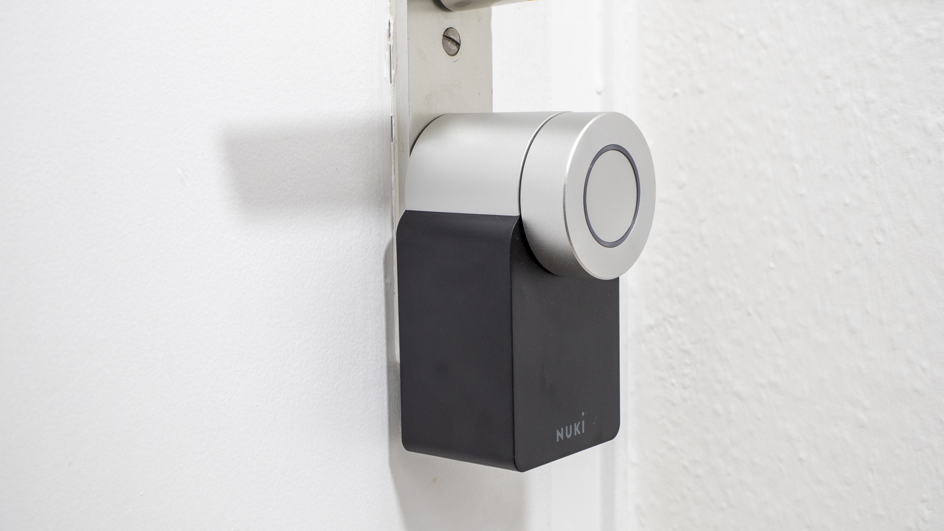 Die Montage des smarten Türschlosses gelang im Test problemlos. Es wird einfach bei steckendem Schlüssel von innen auf den bisherigen Schließzylinder montiert – das macht weniger Arbeit als das Ersetzen eines herkömmlichen Schließzylinders durch einen anderen herkömmlichen Schließzylinder. Nach wenigen Minuten ist dieser Schritt erledigt. Je nach Türschloss wird das Nuki Smart Lock 2.0 entweder angeschraubt oder geklebt. Bei uns konnten wir zum Glück (da Mietwohnung) kleben. Allerdings ist das mitgelieferte doppelseitige Klebeband leider nicht qualitativ überzeugend, denn nach gut zwei Wochen hat sich der Kleber bereits gelöst. Mit Tesa Powerbond hält das Gerät jetzt jedoch bombenfest.