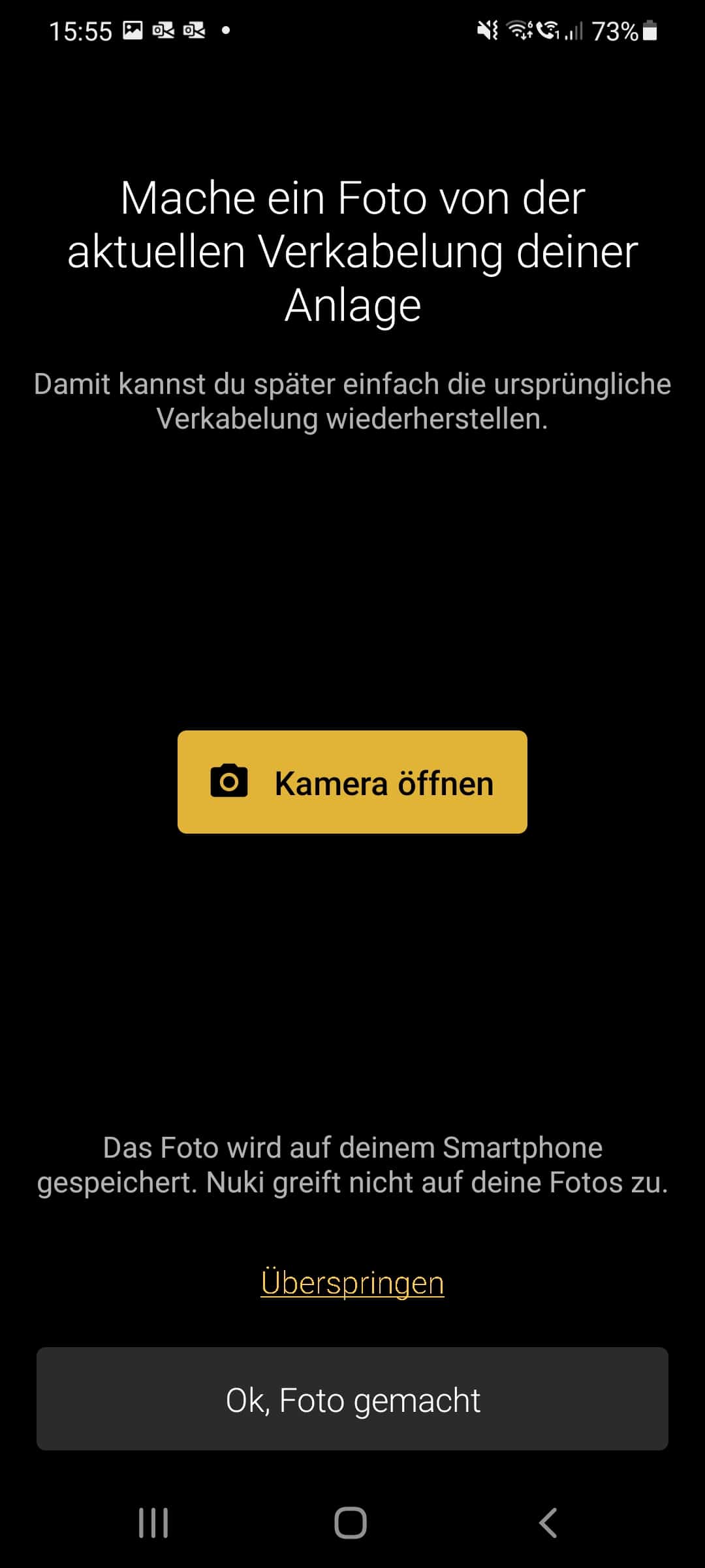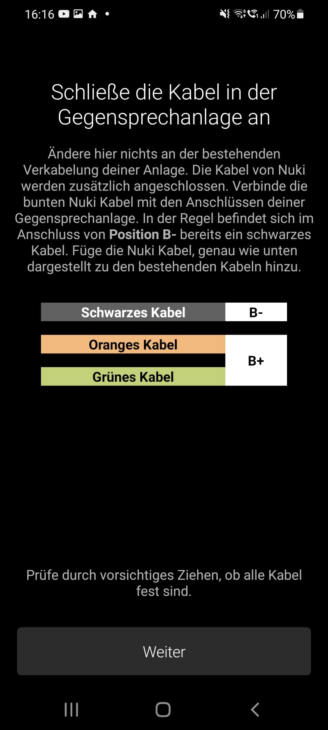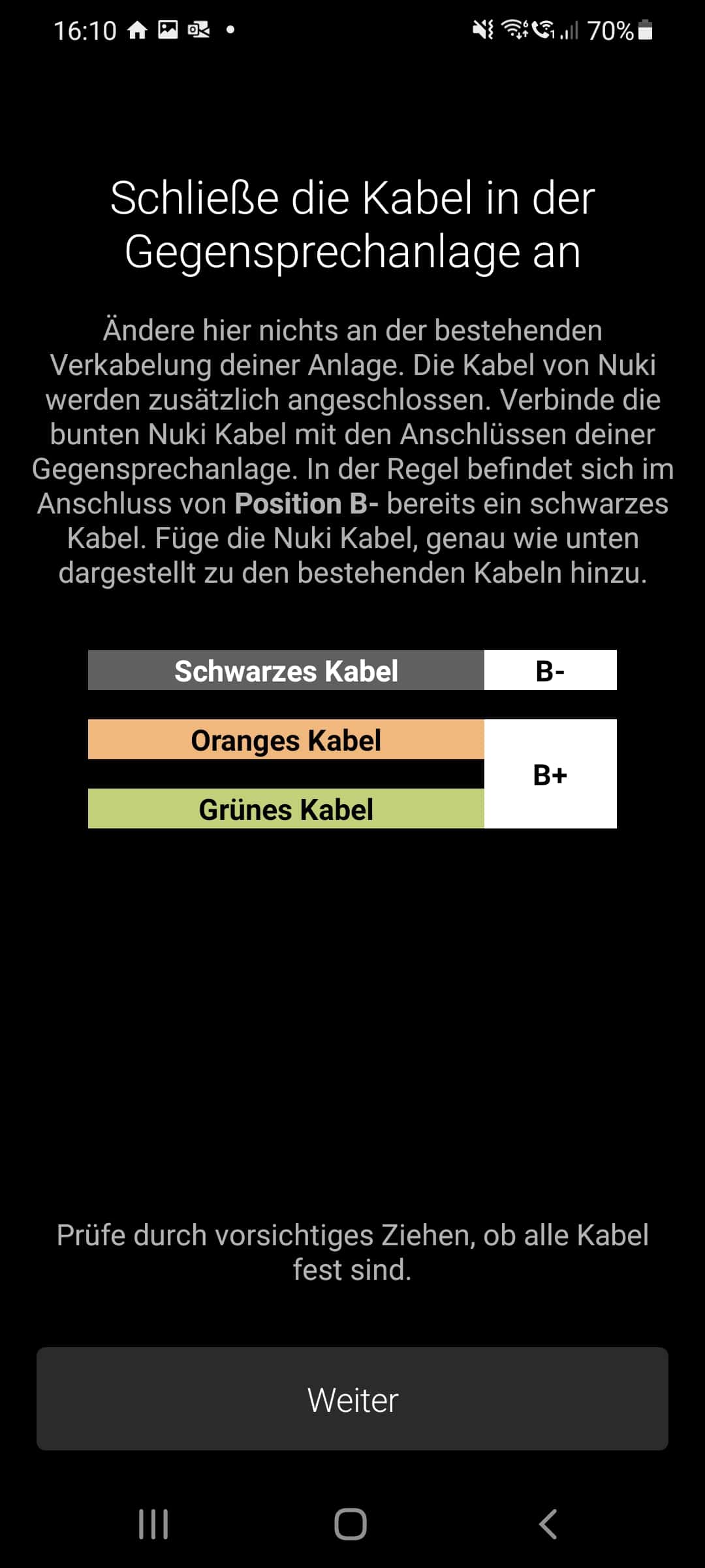 Ohne die Anleitung in der Nuki-App sollte kein Montageversuch unternommen werden, schließlich kann es im schlechtesten Falle zu Verletzungen sowie zum Ausfall der Öffnungsanlage kommen, was mehr als nur ein wenig ärgerlich wäre. Wir sind den in der App angezeigten Montageschritten also genauestens gefolgt – und mussten feststellen, dass die Arbeit durchaus anspruchsvoll ist. Die Anleitung war bei unserer Klingelanlage nicht sofort verständlich und könnte Laien durchaus überfordern. Außerdem sind die Kabel einer Klingelanlage sehr dünn und zumindest bei uns auch relativ kurz, wodurch die Montage erschwert wird. Außerdem muss für die vom Opener benötigte Kabelklemme zusätzlicher Platz vorhanden sein. Wir konnten die Bedientafel dadurch nur schwer wieder in die Wandhalterung einhängen. Hier sind also Feinmotorik und gute Augen gefordert. Schlussendlich haben wir es jedoch geschafft. In manchen Regionen bietet Nuki auch einen Installationsservice an, falls man sich das nicht selber zutraut.