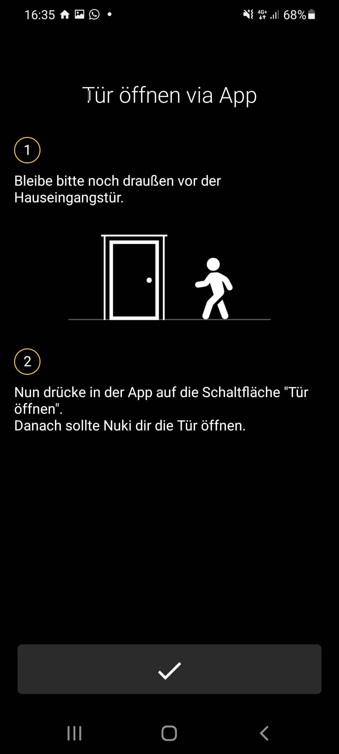 Nähern wir uns danach der Wohnungstür, sollte der Geofence-Modus genauso wie bei der Haustür bereits aktiv sein, und nach der automatischen Verbindung von Smartphone und Smart Lock per Bluetooth sollte sich die Wohunngstür öffnen. Auch hier hatten wir natürlich das selbe Problem wie mit der Haustür. Wenn Geofence nicht getriggert wird, passiert nichts. Besonders ärgerlich ist es jedoch, wenn man dann die Tür manuell per App öffnet und einige Minuten nachdem man die Wohnung betreten hat das automatische Öffnen getriggert wird und man die Tür dann wieder schließen muss. Das kam während unseres längeren Testzeitraums von gut zwei Monaten zwar nur zwei Mal vor, es sollte aber gar nicht passieren.